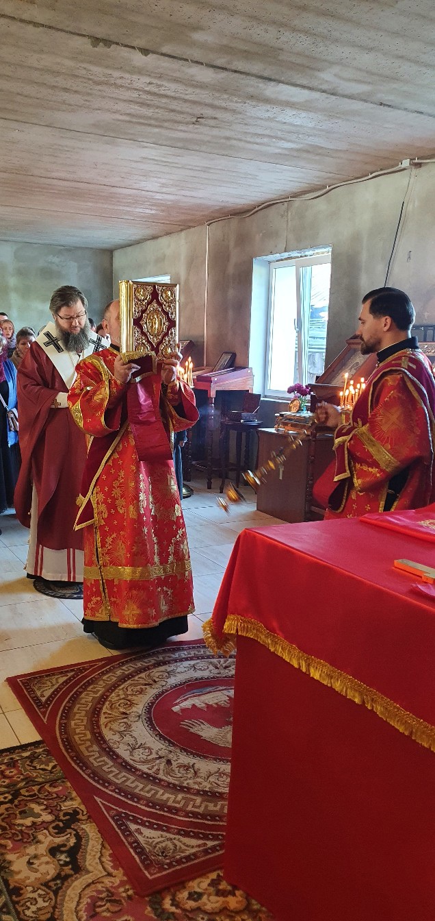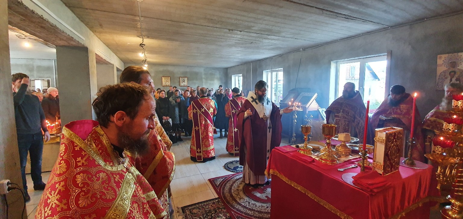 После сугубой ектении Преосвященный Мелетий вознес молитвы о мире на Украине и об избавлении от коронавируса.