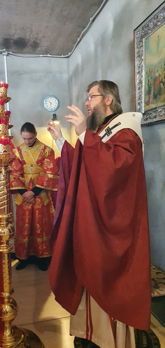 В связи с ремонтом в Вознесенском храме богослужение совершалось в новом сестринском корпусе во временно оборудованном храме.