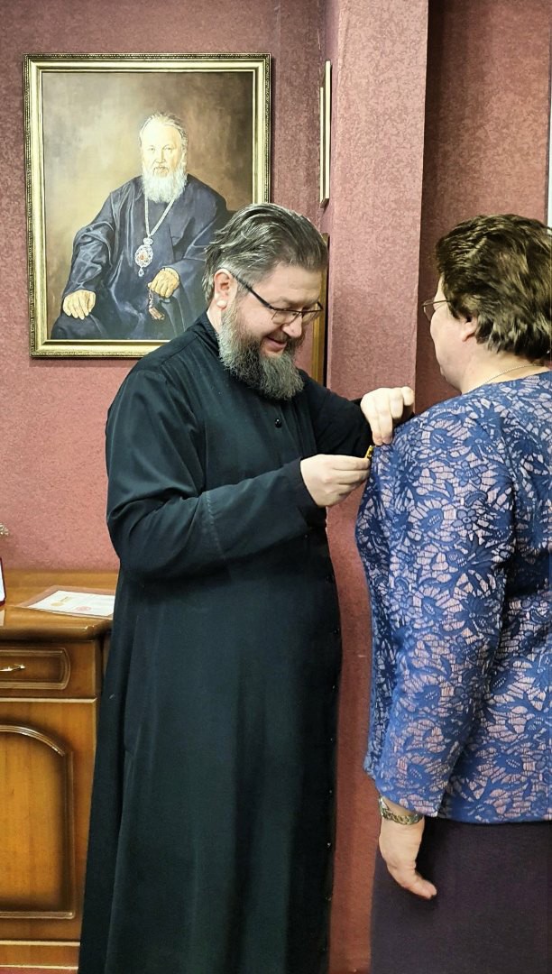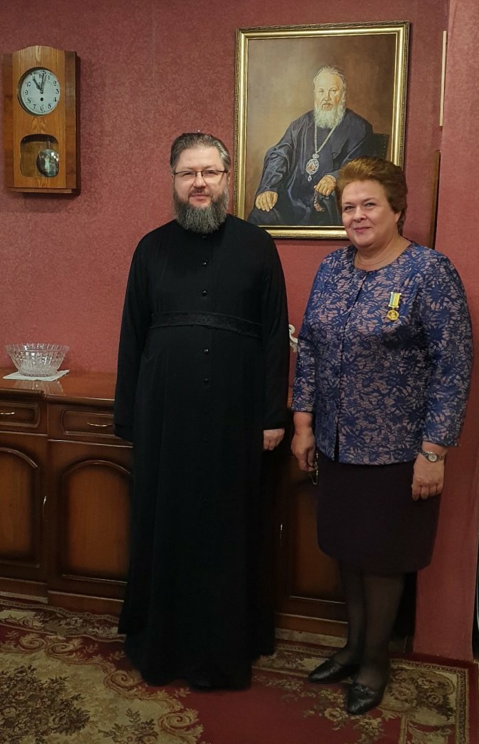 В признание заслуг Ольги Владимировны Преосвященный Мелетий вручил