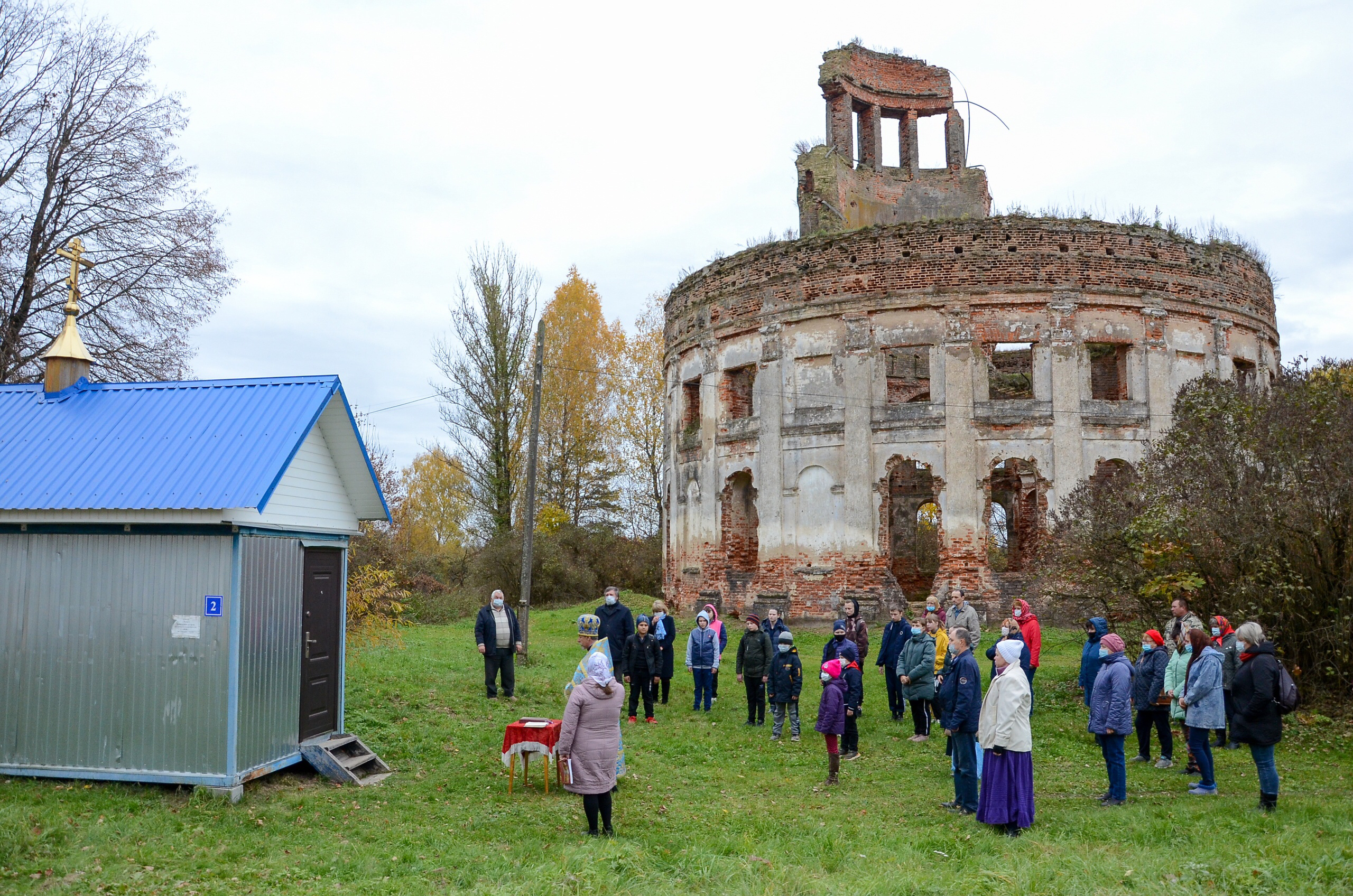 14 октября 2021 года, в праздник Покрова Пресвятой Богородицы, рядом с руинами храма в деревне Черепово Хиславичского района был отслужен праздничный молебен.