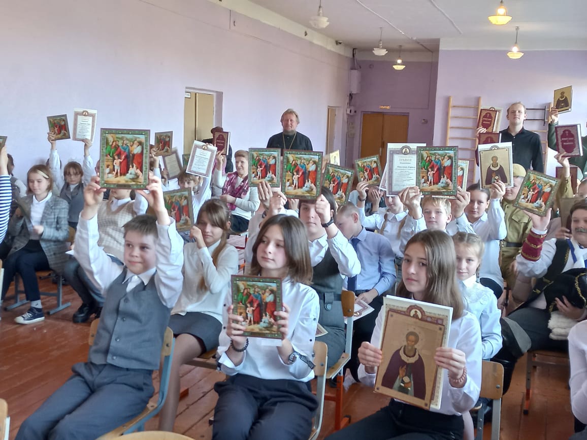 Всем участникам благочинный, а таковых было 60 человек, вручил Епархиальные грамоты и ценные подарки в виде икон «Благословение детей», прп. Сергия Радонежского. Старшеклассникам также были вручены книги Новый Завет и Псалтырь.