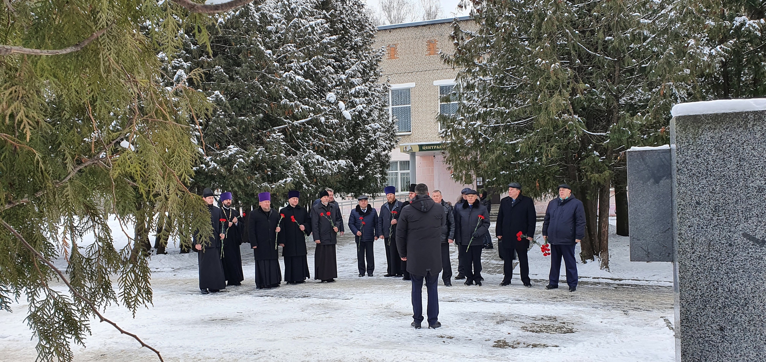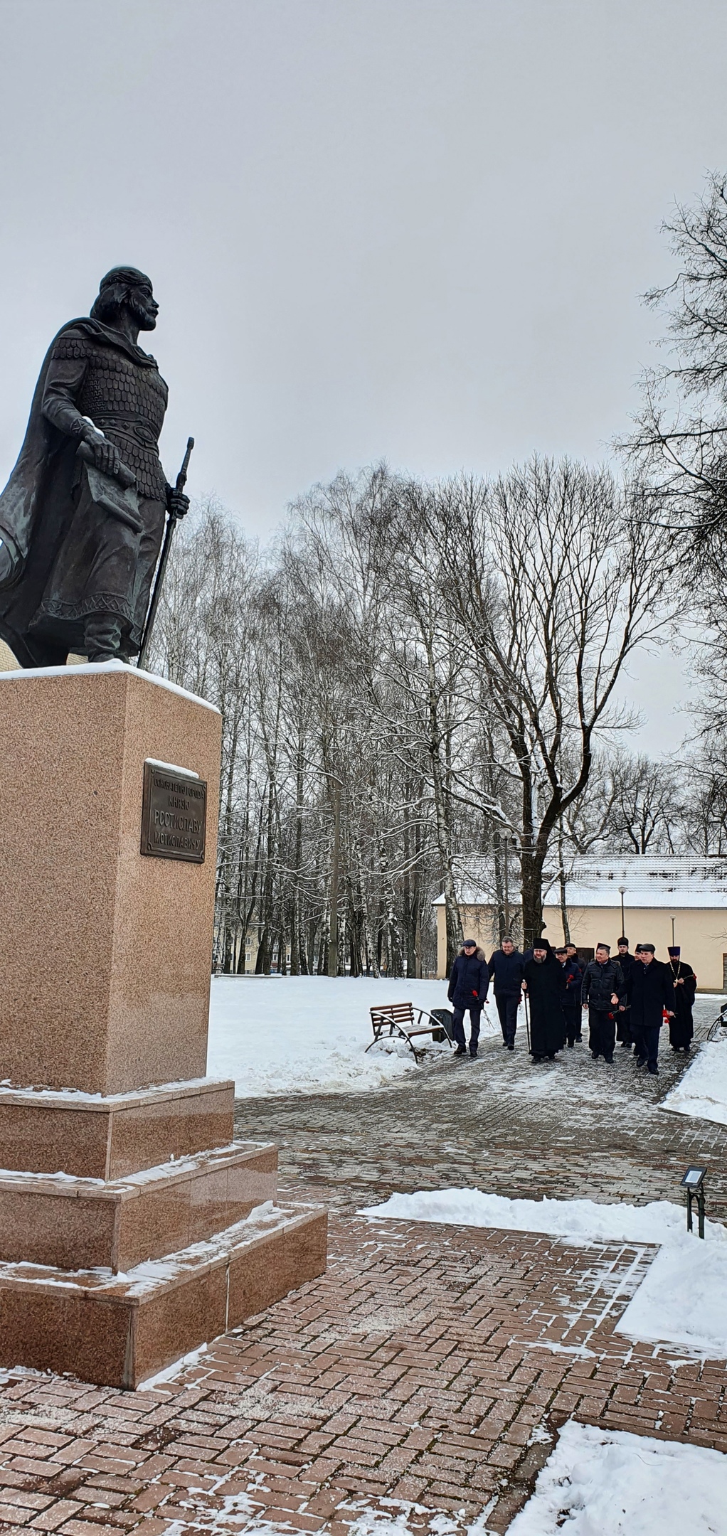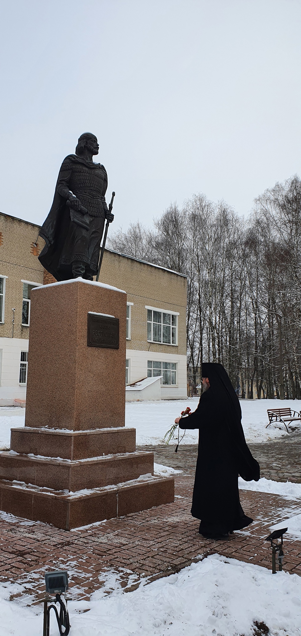 Преосвященный Мелетий с главами Муниципальных образований находящихся на канонической территории Рославльской епархии и духовенством епархии возложили цветы к памятнику Князя Ростислава и героям Отечества.