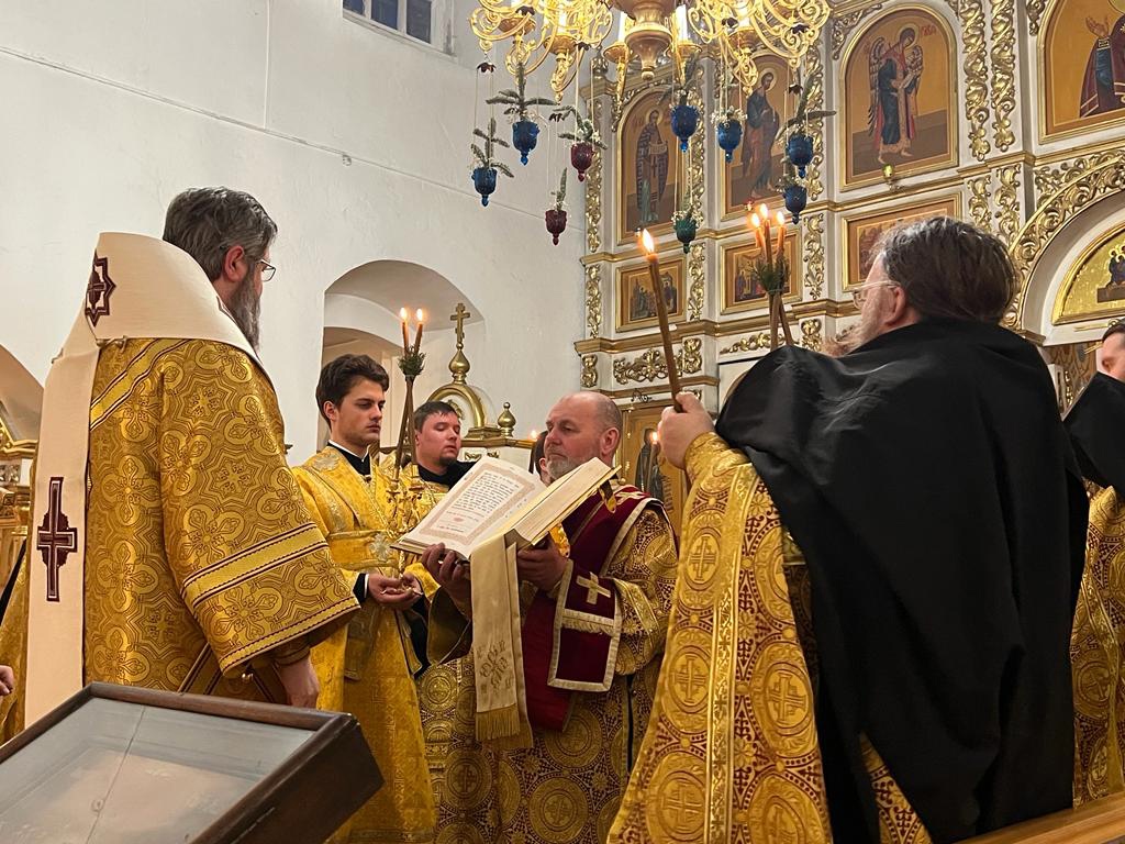 12 февраля 2022 года Его Преосвященство епископ Рославльский и Десногорский Мелетий совершил Всенощное бдение в Преображенском соборе Спасо — Преображенского монастыря города Рославля.