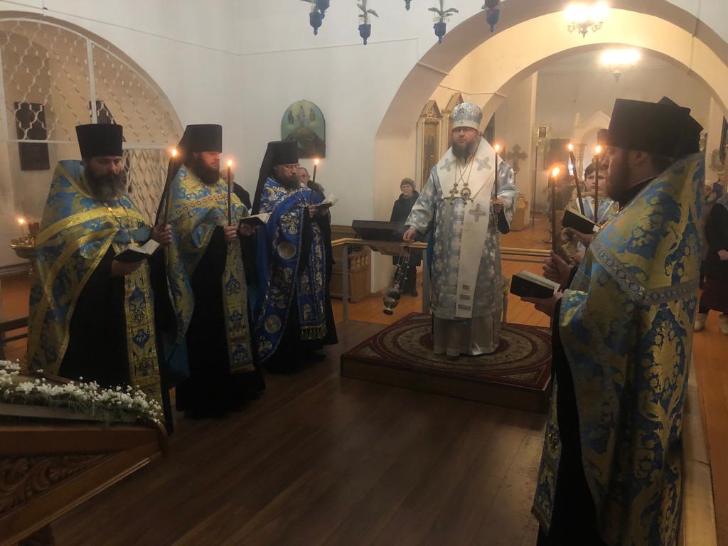 14 февраля 2022 года, в навечерие Праздника Сретения Господня, Его Преосвященство епископ Рославльский и Десногорский Мелетий совершил Всенощное бдение в Преображенском соборе Спасо — Преображенского монастыря города Рославля.