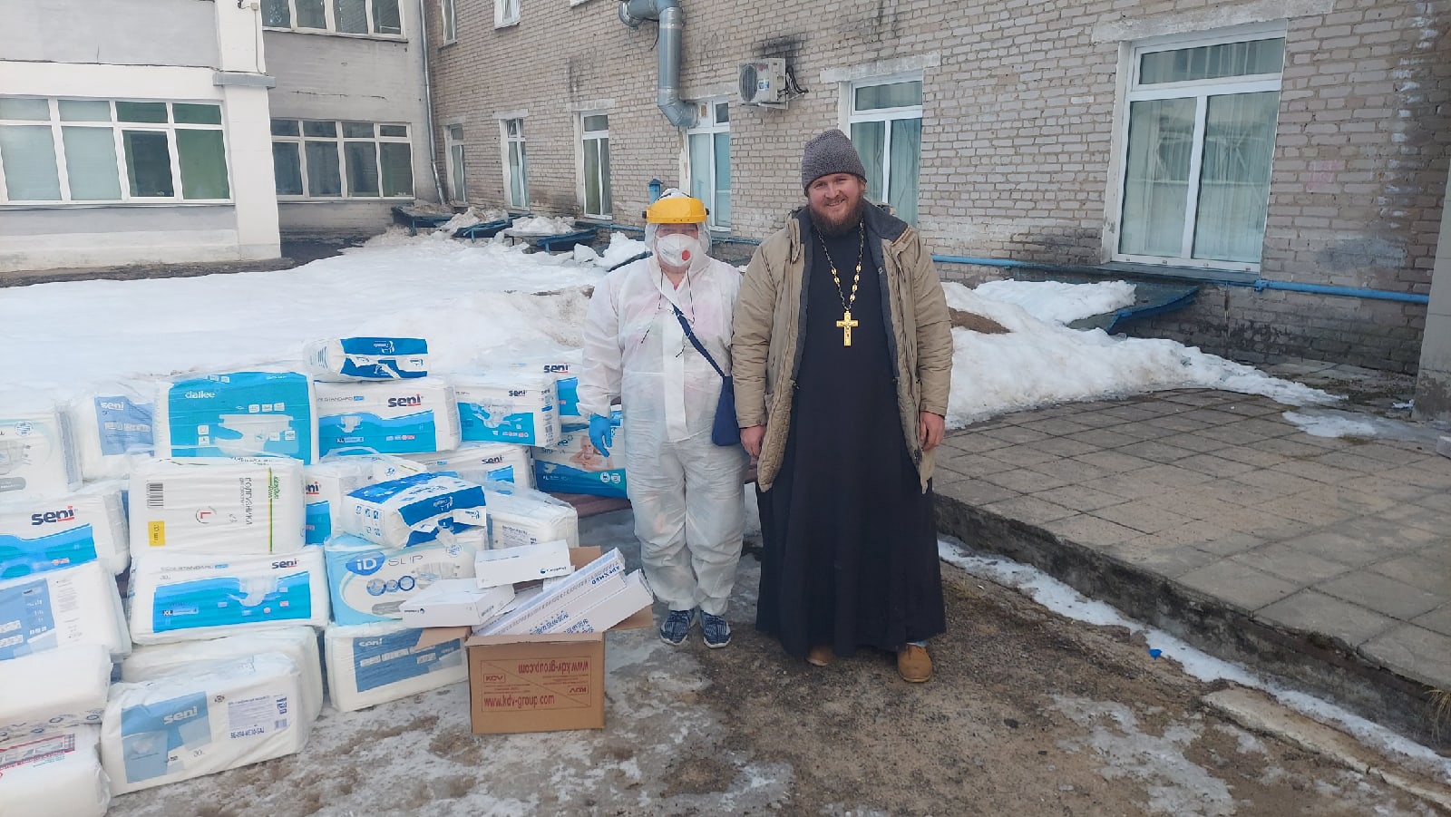 А также были переданы подгузники, мочеприемники и катетеры.