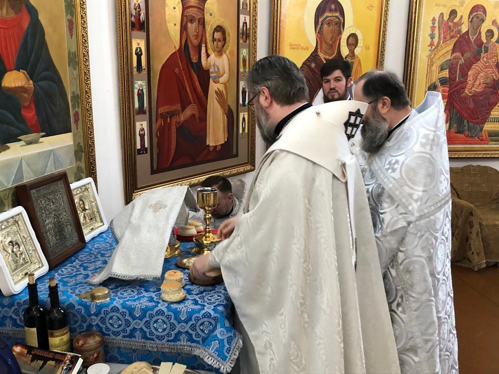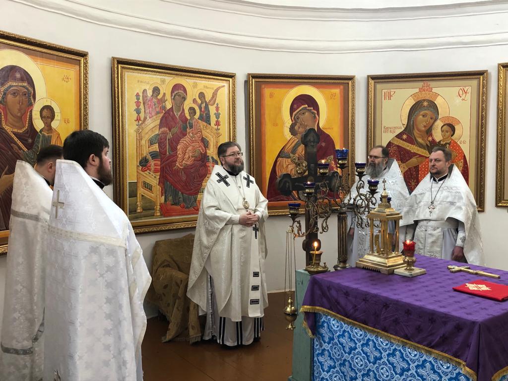 Преосвященному сослужили клирики Рославльской и Смоленской епархий.