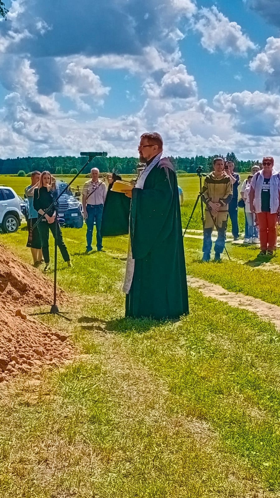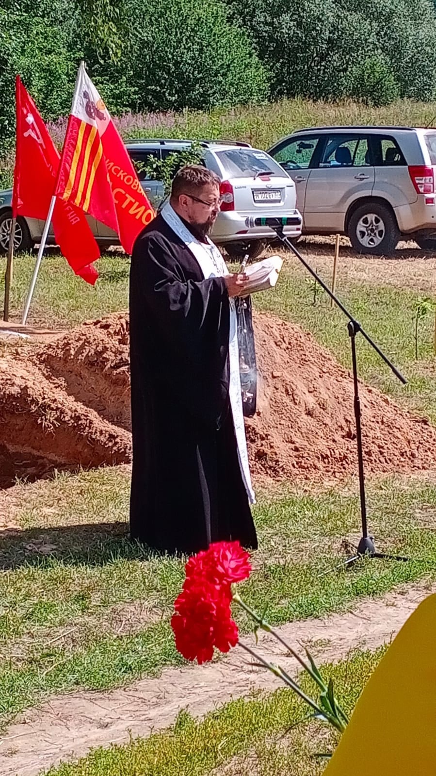 На месте перезахоронения Петра Петровича Соловьева иерей Сергий Володченков совершил заупокойную литию.