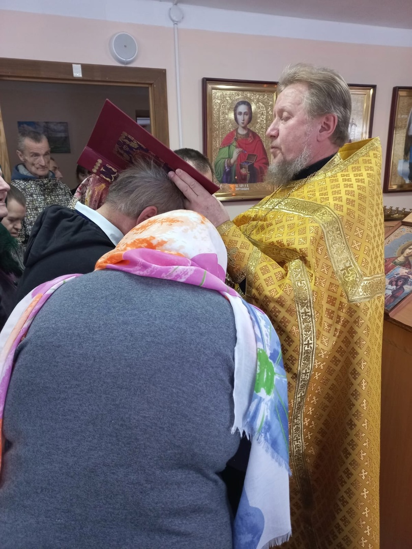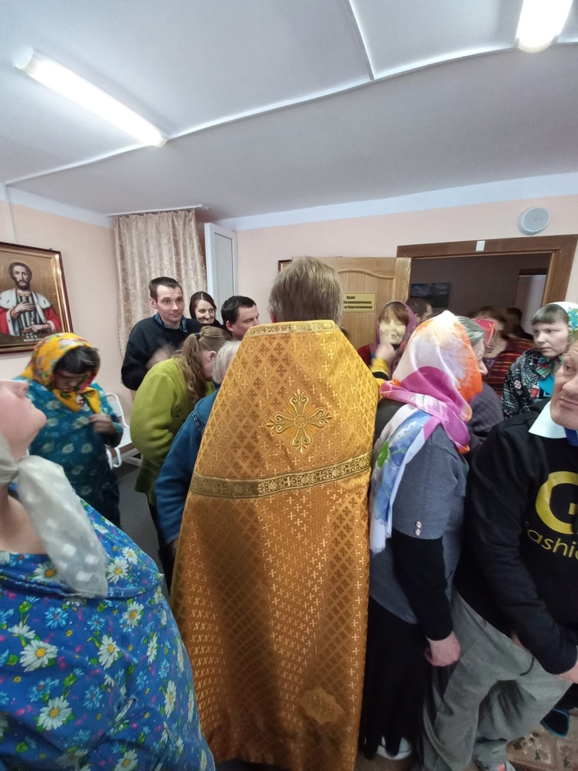 Отец Николай окропил святой водой молящихся в храме и прошел по комнатам.