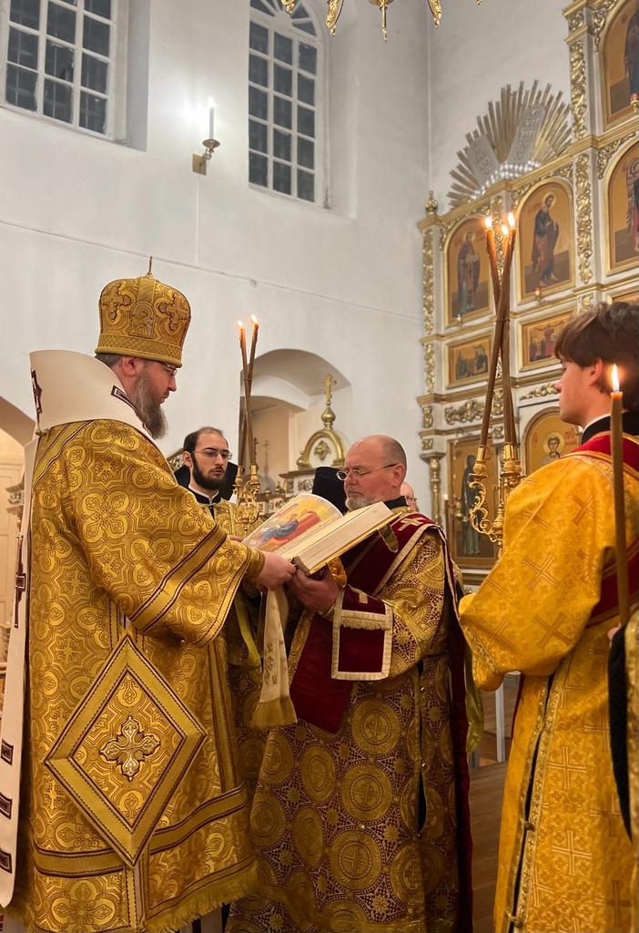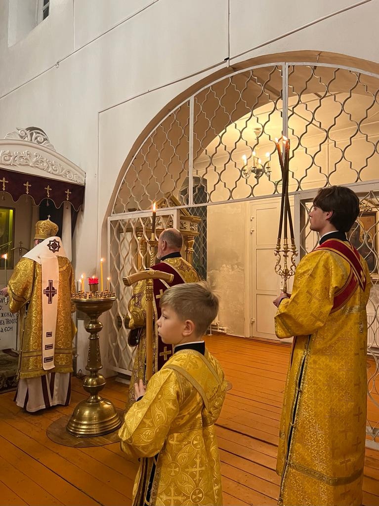 10 декабря 2022 года Его Преосвященство епископ Рославльский и Десногорский Мелетий совершил Всенощное Бдение в Преображенском соборе Спасо — Преображенского мужского монастыря города Рославля.