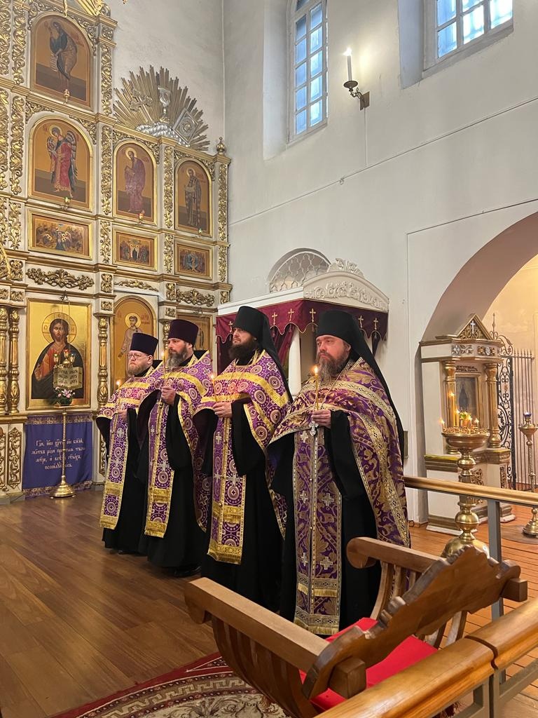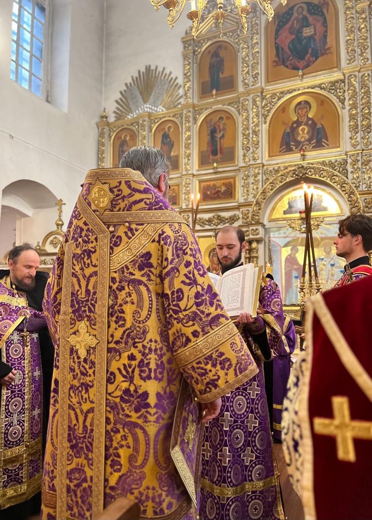1 апреля 2023 года Его Преосвященство епископ Рославльский и Десногорский Мелетий совершил Всенощное Бдение в Преображенском соборе Спасо — Преображенского мужского монастыря города Рославля.