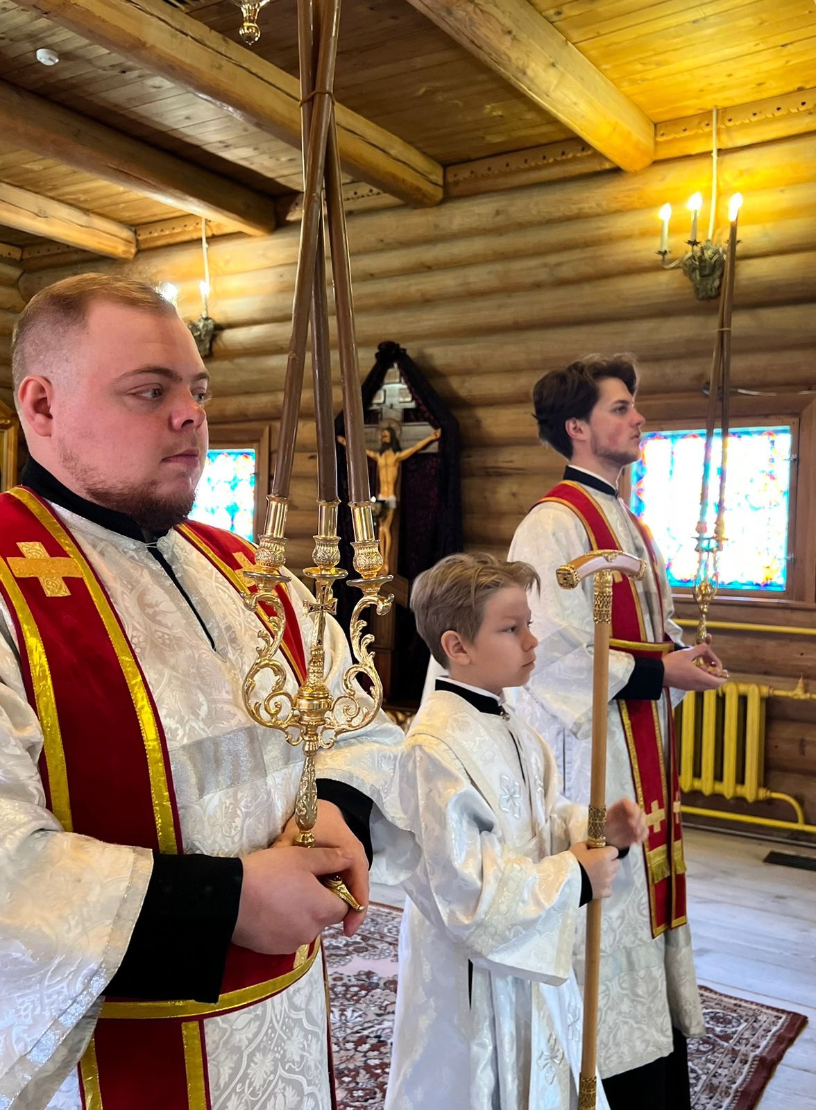 8 апреля 2023 года Его Преосвященство епископ Рославльский и Десногорский Мелетий совершил Божественную Литургию на Десногорском подворье Рославльского Спасо-Преображенского монастыря в храме святого Стефана Великопермского города Десногорска.