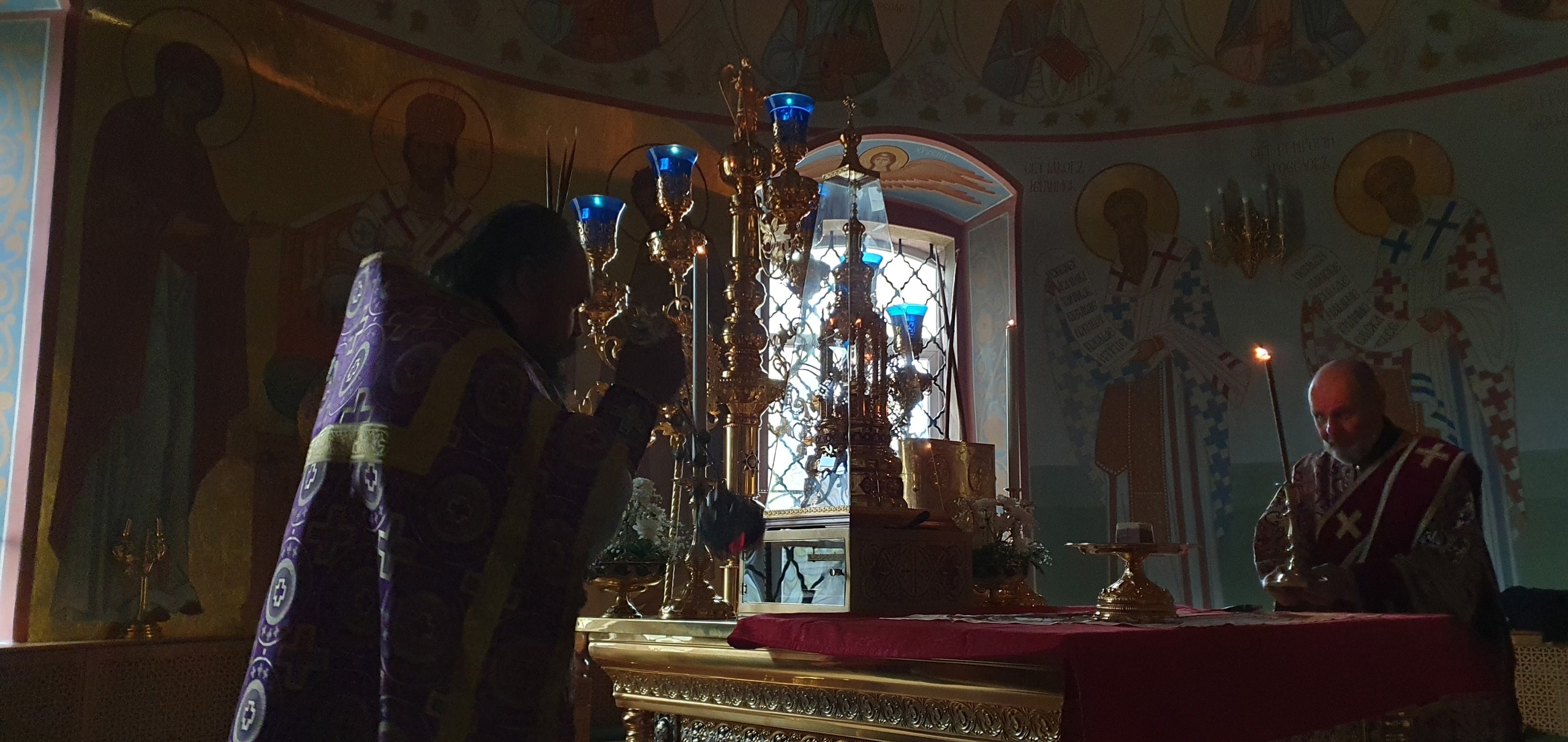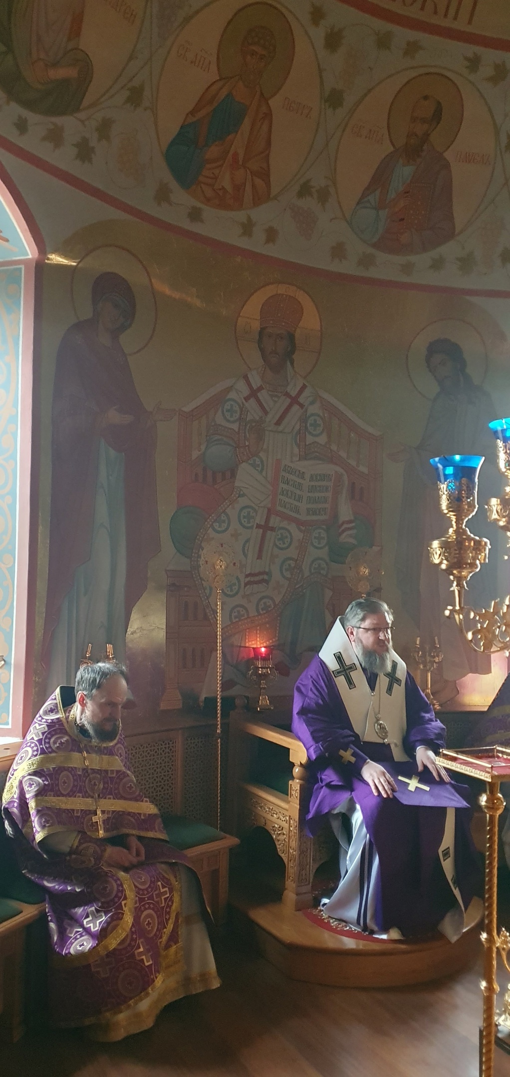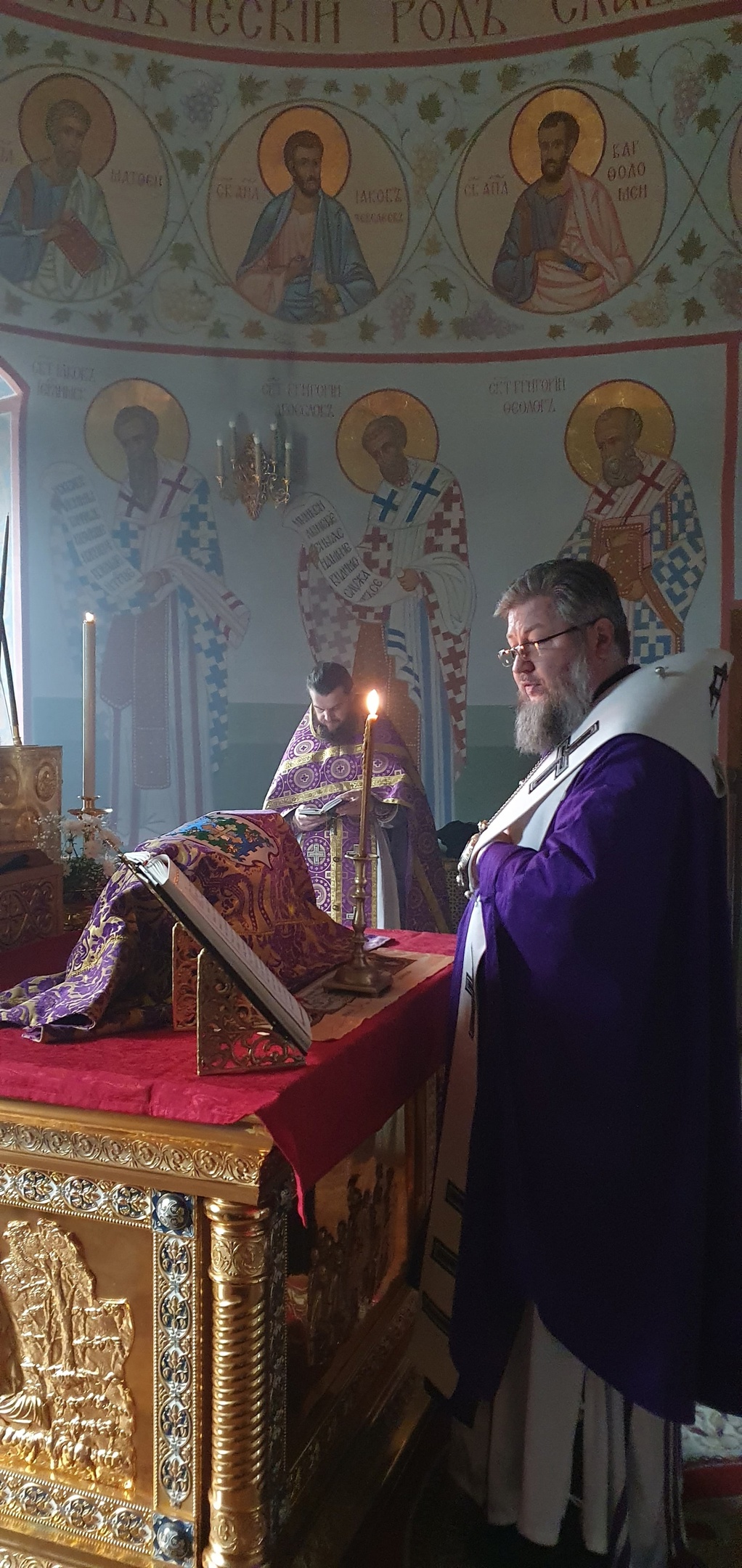 10 апреля 2023 года, в Страстной Понедельник, Его Преосвященство епископ Рославльский и Десногорский Мелетий совершил Божественную Литургию Преждеосвященных Даров в Спасо-Преображенском соборе г.Рославля