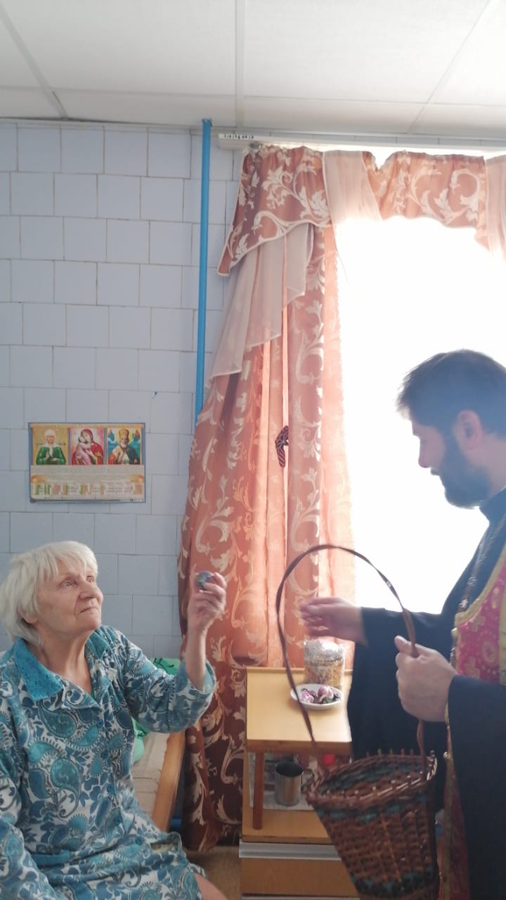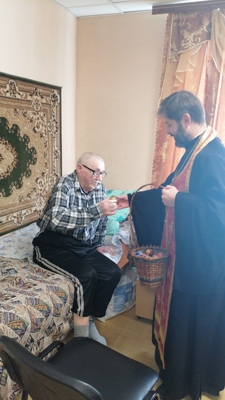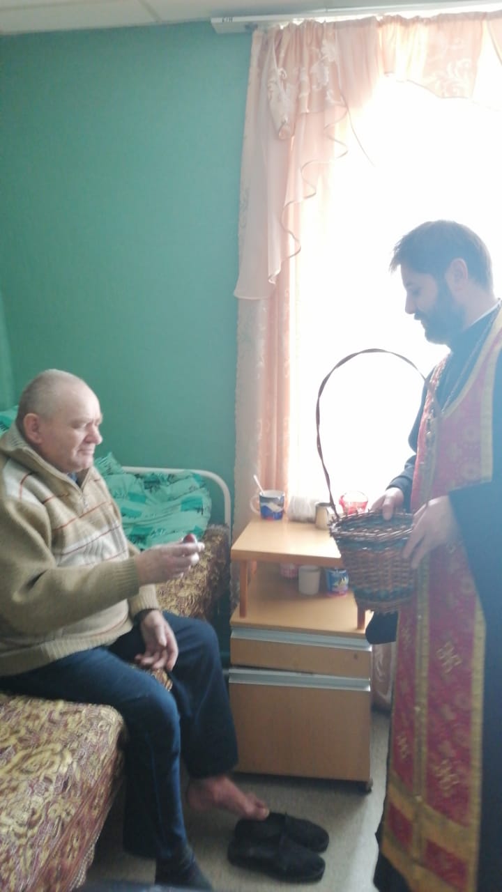 Настоятель Свято-Ильинского храма г Ельни, иерей Михаил Дмитриев посетил Теренинский дом интернат для престарелых и инвалидов. Священник поздравил всех проживающих в интернате с праздником Светлого Христова Воскресения, пожелал крепкого здоровья, терпения и любви к друг другу.