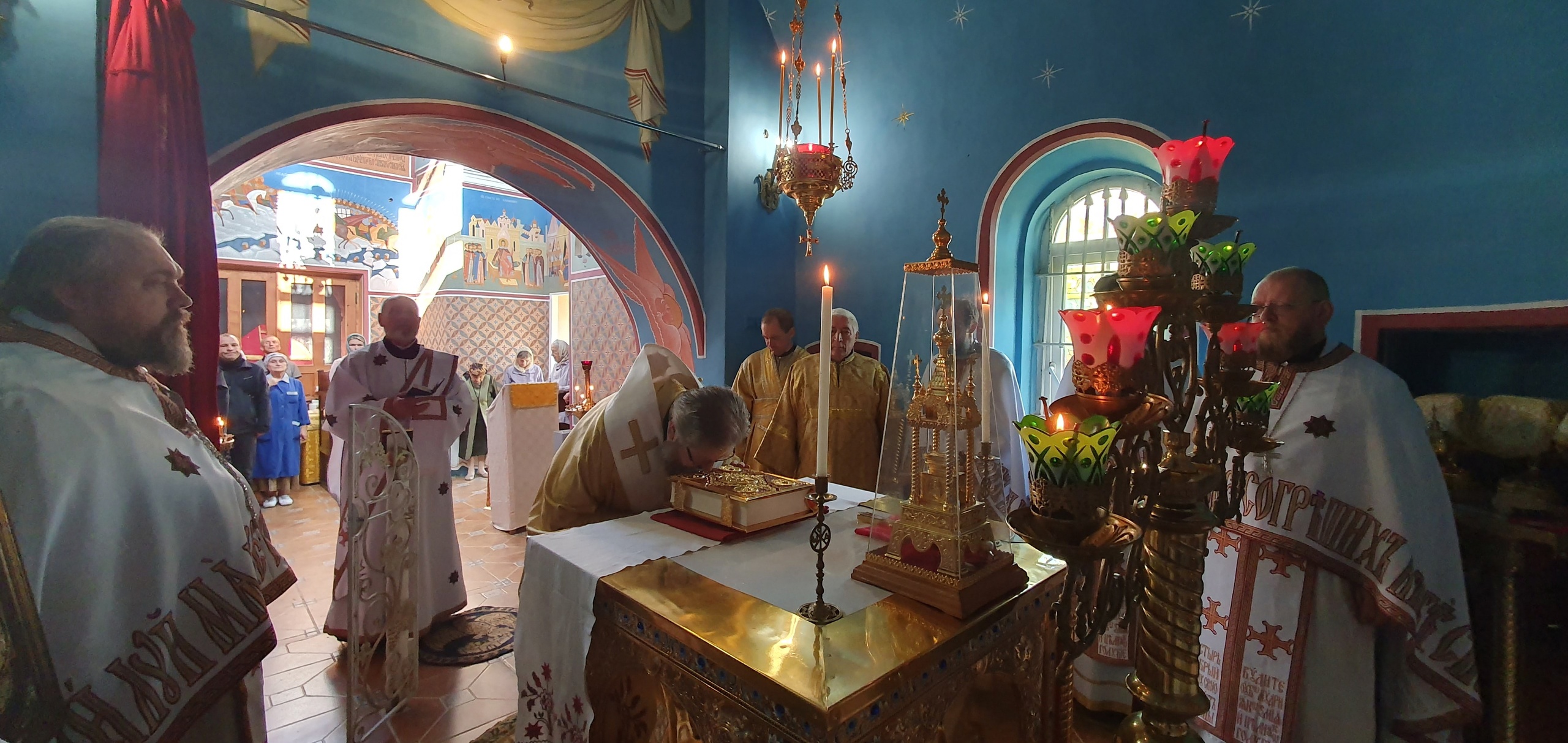 12 сентября 2023 года Его Преосвященство епископ Рославльский и Десногорский Мелетий совершил Богослужение в Александро-Невском храме Спасо — Преображенского монастыря города Рославля.