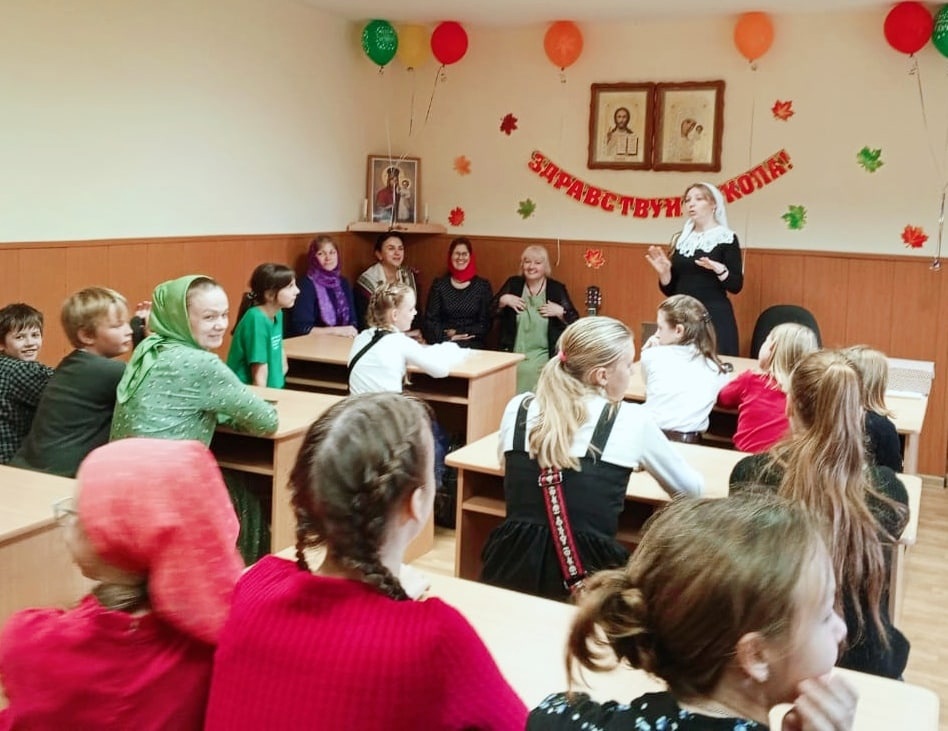 После общего молебна на начало учебного года, в актовом зале прошла торжественная линейка, на которой все присутствующие смогли ознакомиться с учебной программой, расписанием, и правилами в Воскресной школе.