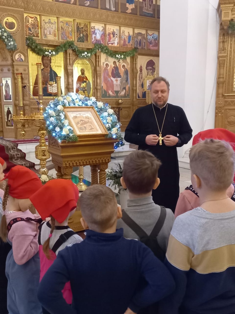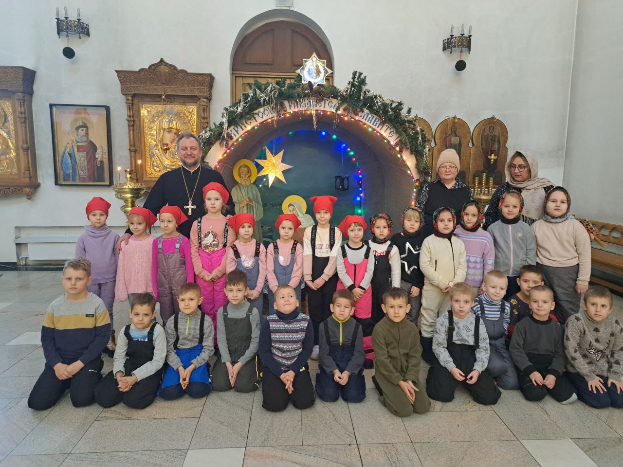 В святочные Рождественские дни Богородице-Скорбященский собор г.Десногорска посетили воспитанники детского сада «Ласточка». Гостей встретил настоятель собора протоиерей Виталий Сладков. Священник возле вертепа рассказал детям о празднике Рождества Христова и добрых традициях его празднования. Маленьким гостям батюшка вручил сладкие подарки.