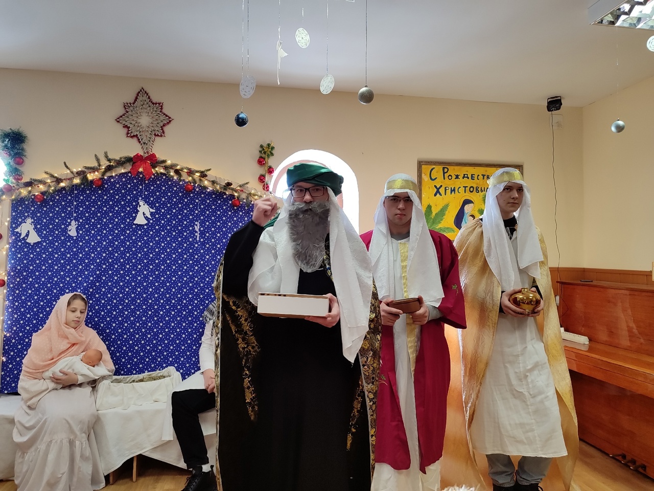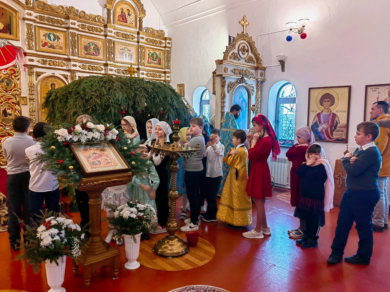 После литургии в актовом зале Воскресной школы состоялся детский Рождественский утренник, где дети показали всем гостям праздника весёлый спектакль «Рождественский теремок», а молодежный клуб «Встреча» представил Евангельский сюжет о Рождении Иисуса Христа.