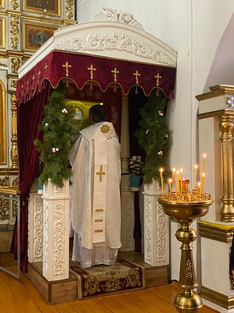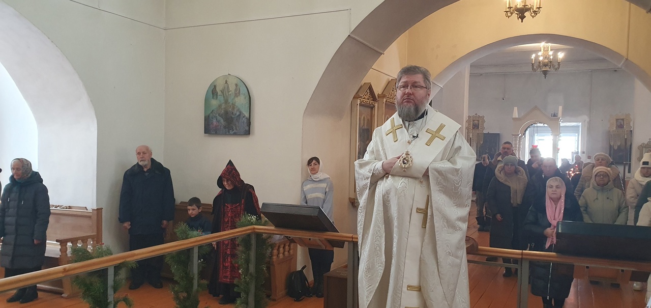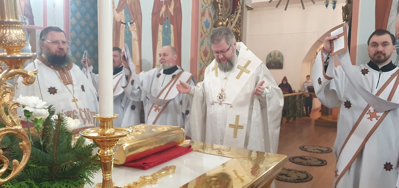 6 января в Навечерие Рождества Христова (Рождественский сочельник) Преосвященный Мелетий совершил Божественную литургию в Спасо-Преображенском соборе г. Рославля.
