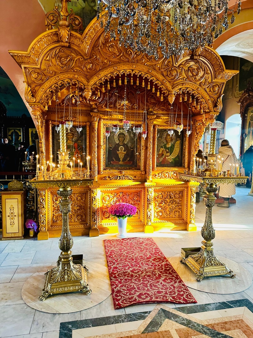 Заключительной точкой паломнического маршрута был Высоцкий ставропигиальный мужской монастырь, где перед чудотворным образом Божией Матери «Неупиваемая Чаша» было совершено молебное пение.