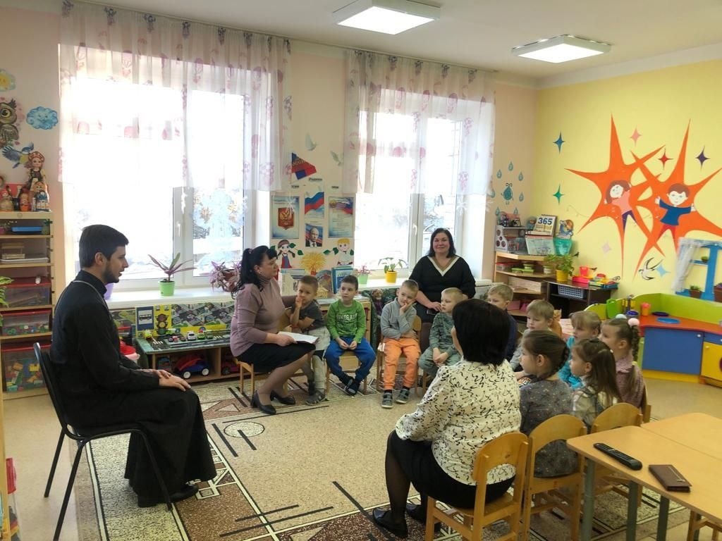 17 января секретарь Рославльской епархии, настоятель Казанского храма г. Рославля иерей Николай Бондар посетил детский садик «Радуга». Священник пообщался с воспитанниками старшей группы, рассказал о празднике Рождества Христова, Святках, о традициях праздника. В заключение встречи всем ребятишкам были подарены сладкие подарки.