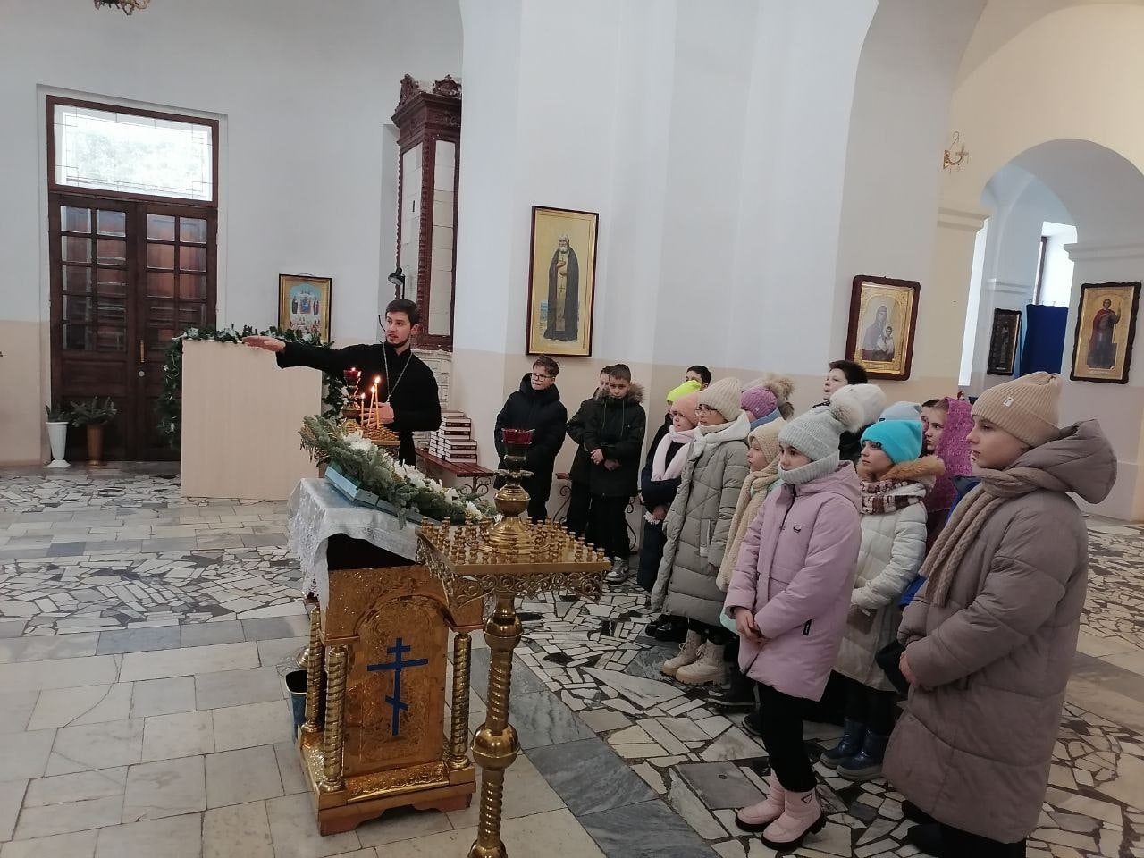 16 января2024 г., в рамках преподавания Основ православной культуры, в Казанском храме г. Рославля прошёл урок-экскурсия для учащихся 4-го класса первой школы г. Рославля. Экскурсию провел настоятель храма священник Николай Бондар.