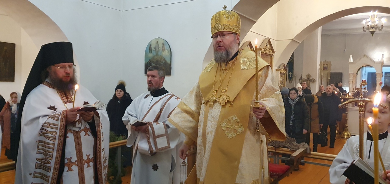 6 января Преосвященный Мелетий совершил Великое повечерие с литией и утреню в Спасо-Преображенском соборе г.Рославля.