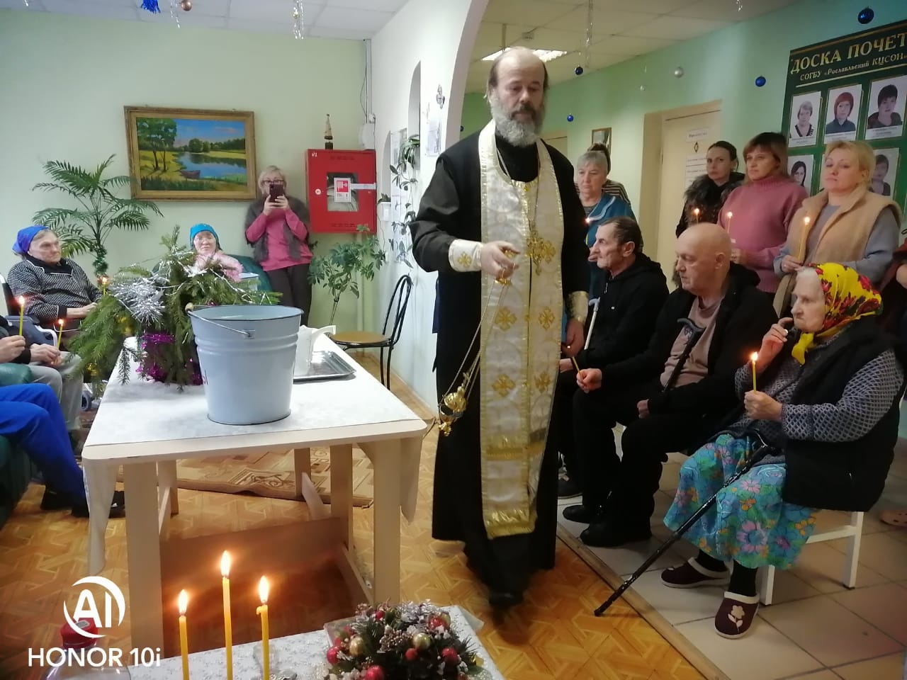 В праздник Крещения Господня, после богослужения в храме, протоиерей Иаков Кушнир посетил социальные учреждения; Никольский психоневрологический интернат и Центр социального обслуживания в г. Рославле.