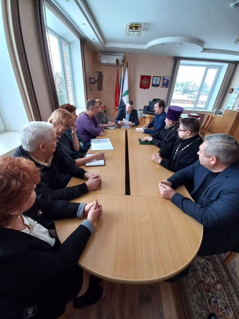 На встрече присутствовали Глава МО «Починковский район» Смоленской области Голуб А.В., благочинный Починковского округа протоиерей Николай Бондар, члены общественного Совета при Администрации Починковского района, духовенство Починковского благочиния.