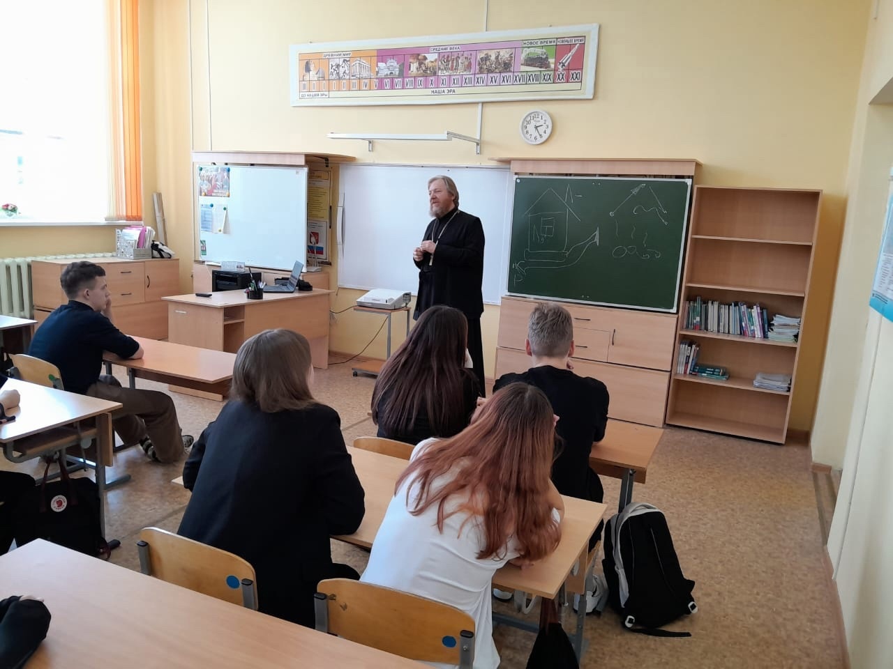 20 февраля встречу с учащимися 10-х классов МБОУ «Средняя школа №1» г. Рославль провёл благочинный Рославльского церковного округа протоиерей Михаил Гольцман. В чем различие любви и влюблённости; что такое красота отношений; в чём смысл и каков путь семьи; что такое языки любви; почему гимн любви апостола Павла всегда актуален, — на эти и другие вопросы искали и находили ответы участники встречи.