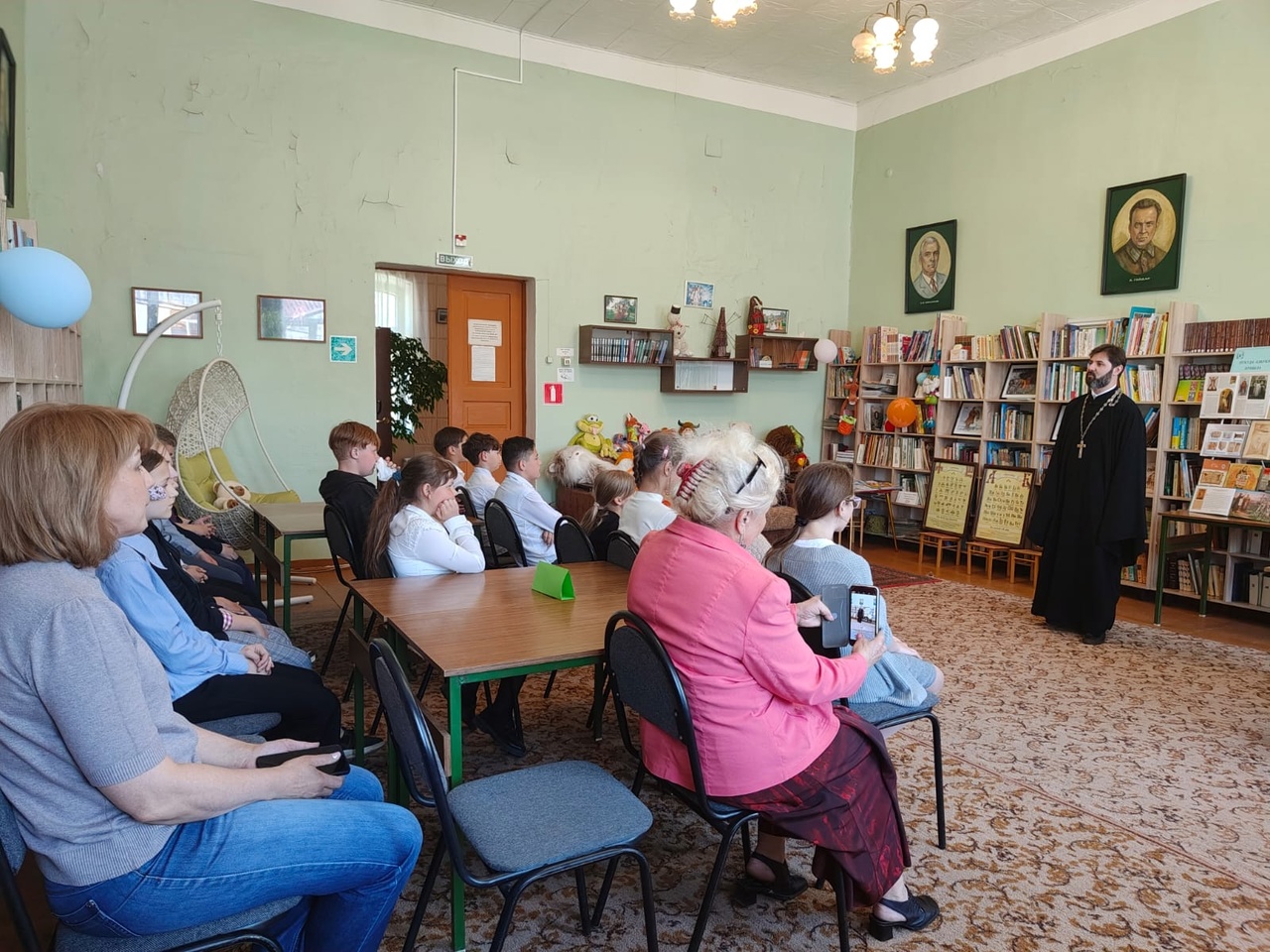 23 мая 2024 г. в районной библиотеке г. Ельни, для учащихся 5-х классов СШ№2 им. К.И.Ракутина, настоятель Свято-Ильинского храма иерей Михаил Дмитриев, провел урок посвящённый «дню Славянской письменности и культуры. Священник рассказал ребятам о жизни и трудах св. Кирилла и Мефодия ,и познакомил с церковно-славянской азбукой.