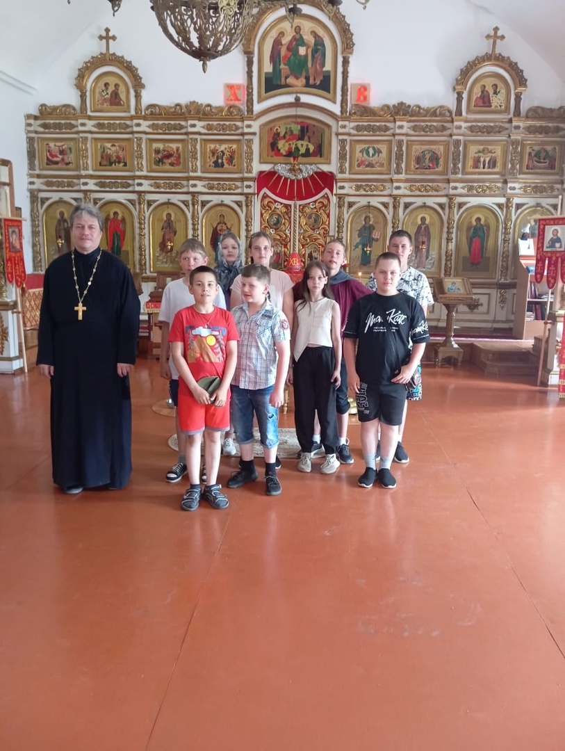 Ребята посетили Тихвинский храм где протоиерей Николай Привалов провёл экскурсию и разрешил позвонить в колокола.