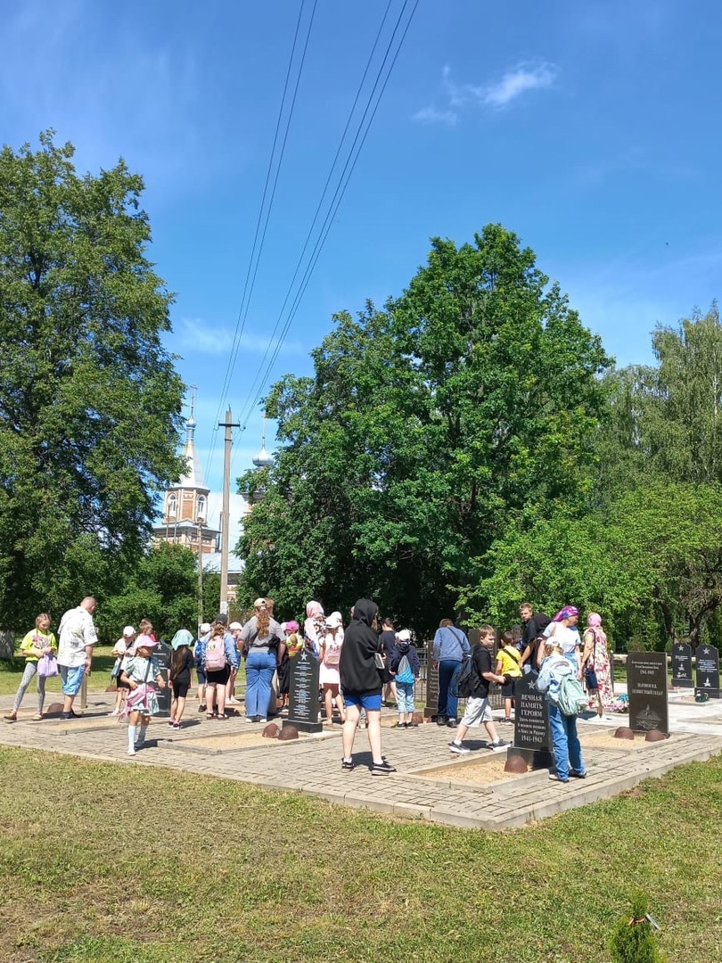 Отец Николай провел урок-экскурсию по территории храма и ознакомил ребят с местом захоронения воинов ВОВ, а также рассказал об устройстве и предназначении храма.