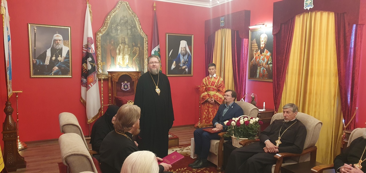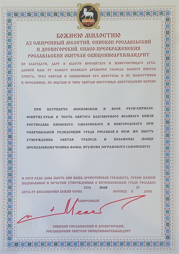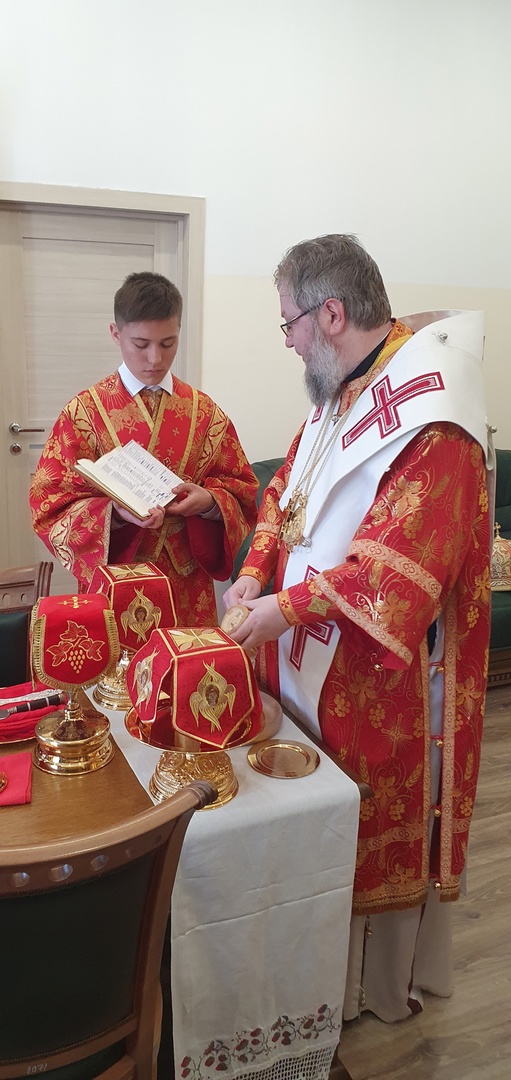 25 мая 2024 г. в Епархиальной резиденции, Преосвященный Мелетий совершил Великое освящение домового храма в честь святаго благоверного князя Ростислава и Божественную Литургию с духовенством Рославльской епархии.