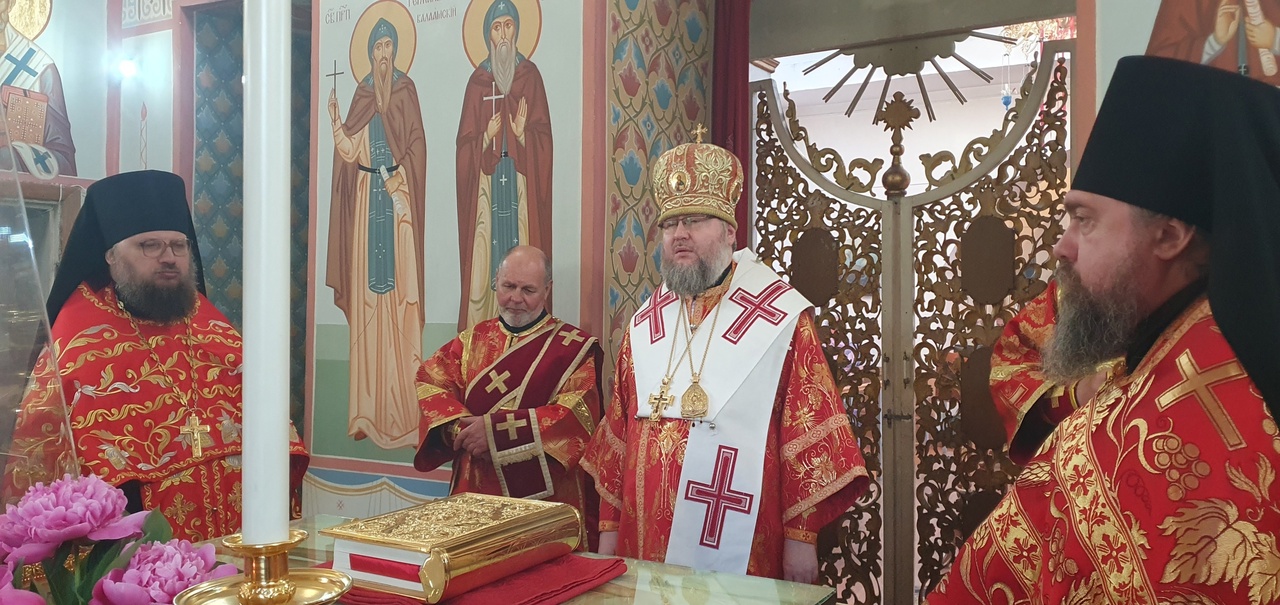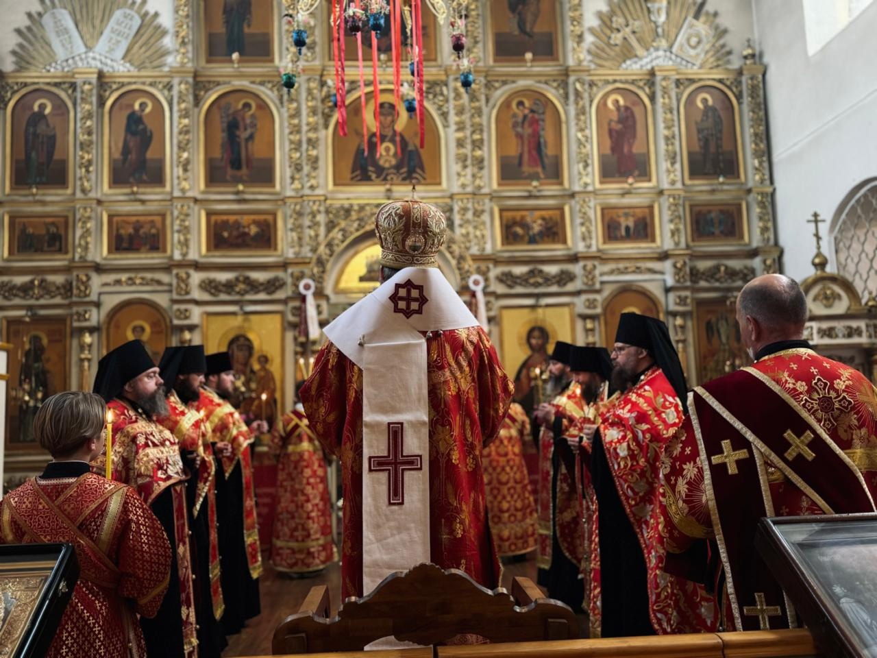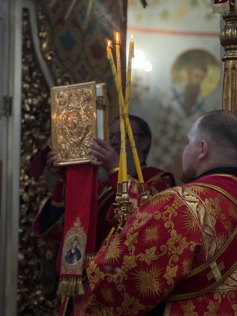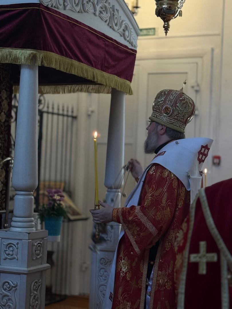 1 июня 2024 г. Преосвященный Мелетий совершил Всенощное Бдение в Спасо-Преображенском соборе г.Рославля.