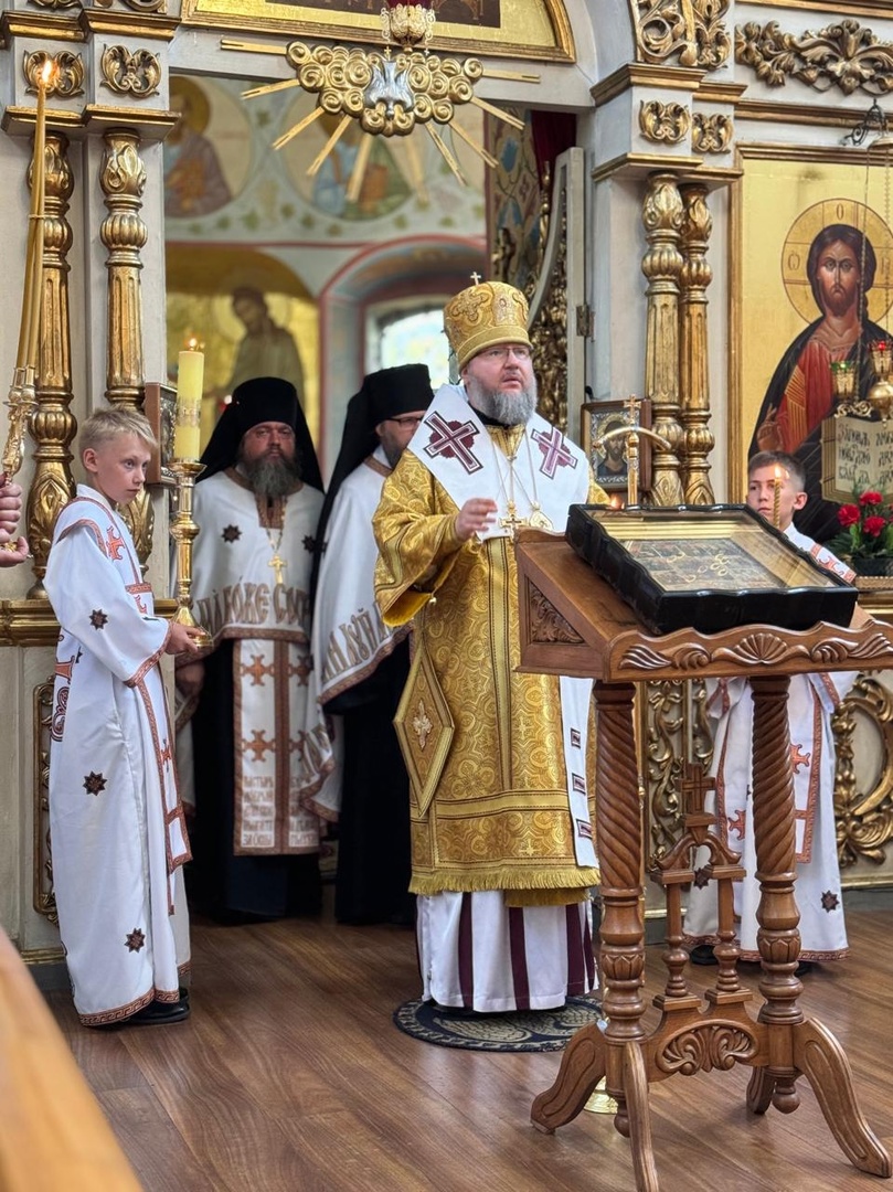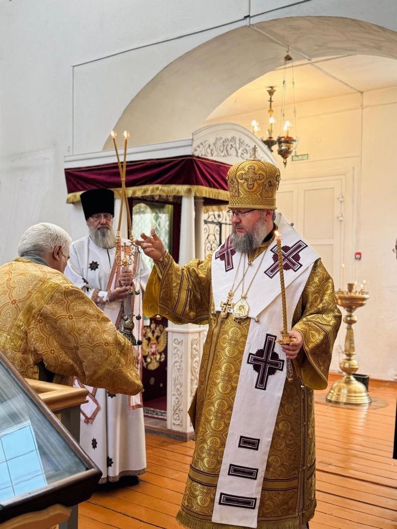 6 июля 2024 г. Преосвященный Мелетий совершил Всенощное Бдение в Спасо-Преображенском соборе г. Рославля.