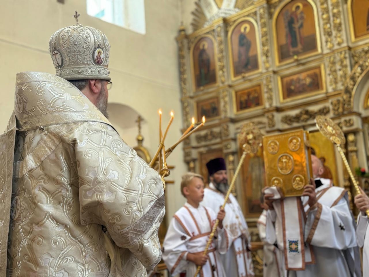 19 августа 2024 г., в праздник Преображения Господня, Преосвященный Мелетий совершил Божественную литургию в Спасо-Преображенском собобре г. Рославля.