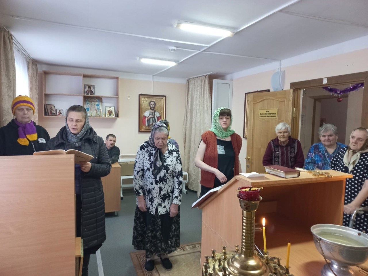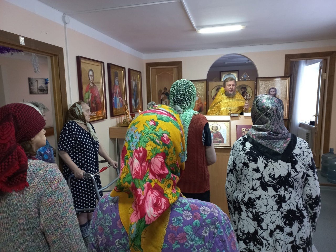 Отец Николай окропил святой водой молящихся в храме, прошел по комнатам к тем, кто по состоянию здоровья не может посетить храм.