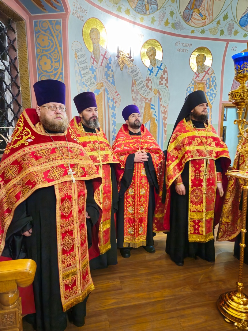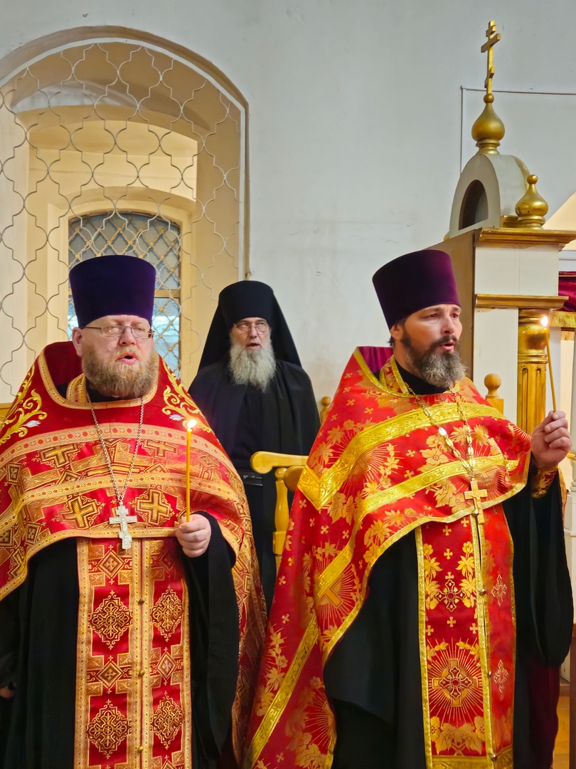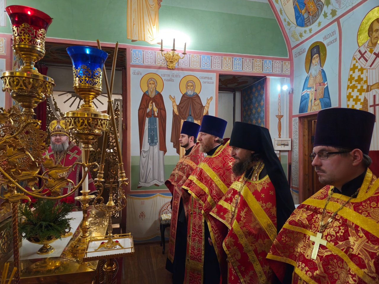 16 декабря 2024 г., в канун дня памяти святой великомученицы Варвары, Преосвященный Мелетий совершил Всенощное Бдение в Преображенском соборе Спасо — Преображенского мужского монастыря города Рославля.