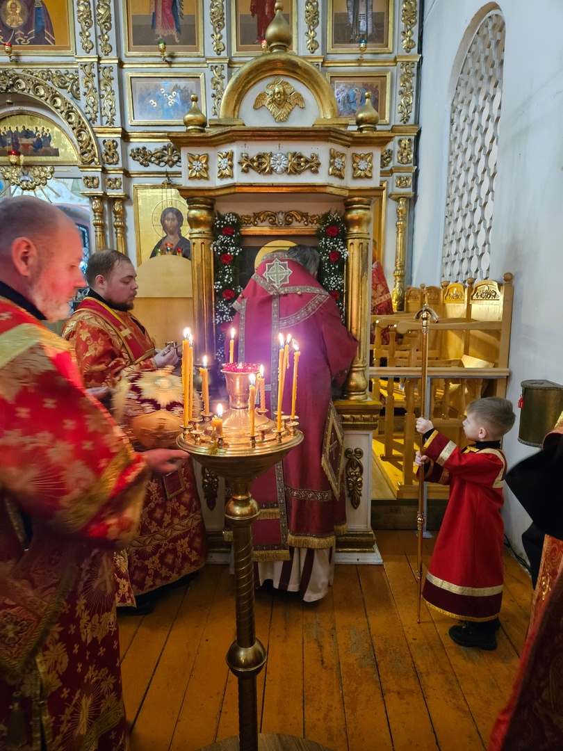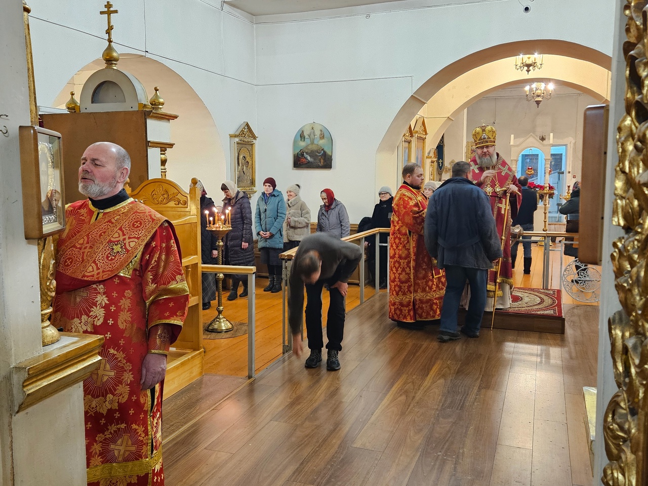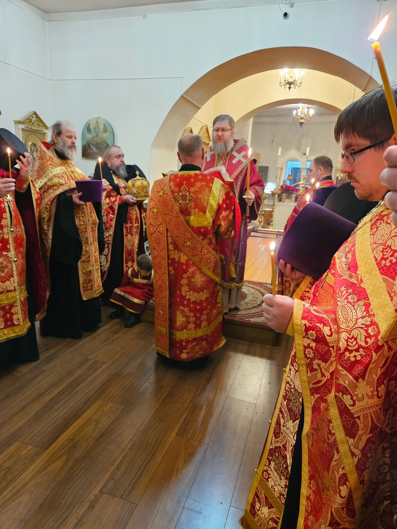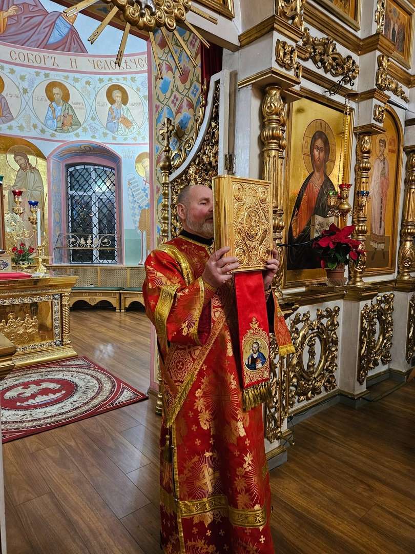 16 декабря 2024 г., в канун дня памяти святой великомученицы Варвары, Преосвященный Мелетий совершил Всенощное Бдение в Преображенском соборе Спасо — Преображенского мужского монастыря города Рославля.
