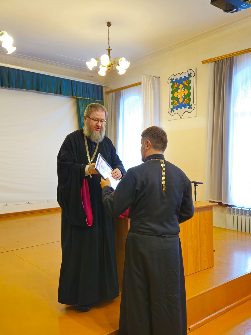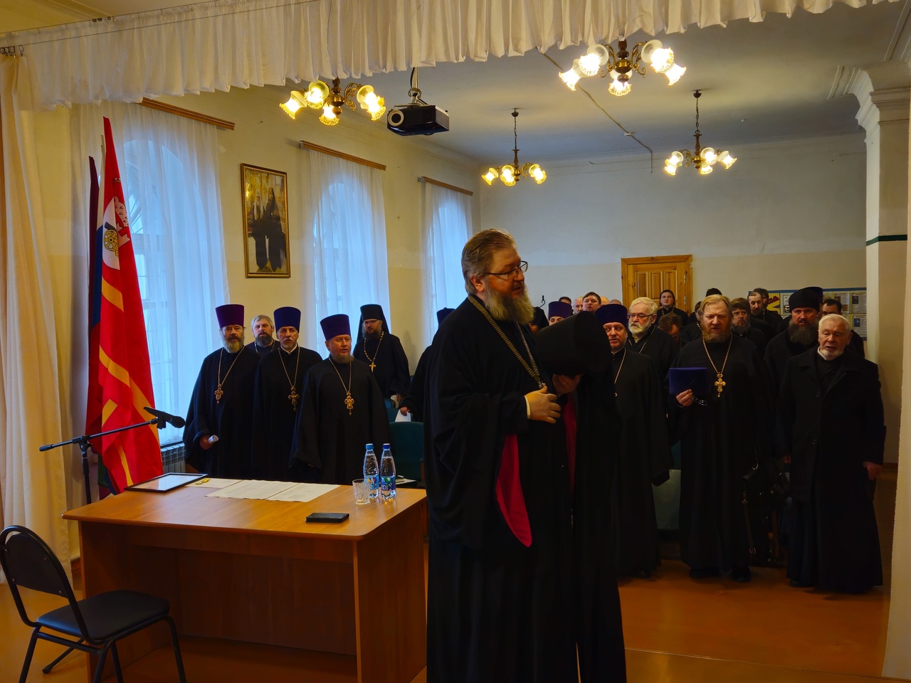 17 декабря 2024 г. в актовом зале Православной гимназии г. Рославля состоялось Епархиальное собрание духовенства Рославльской епархии под председательством епископа Рославльского и Десногорского Мелетия.