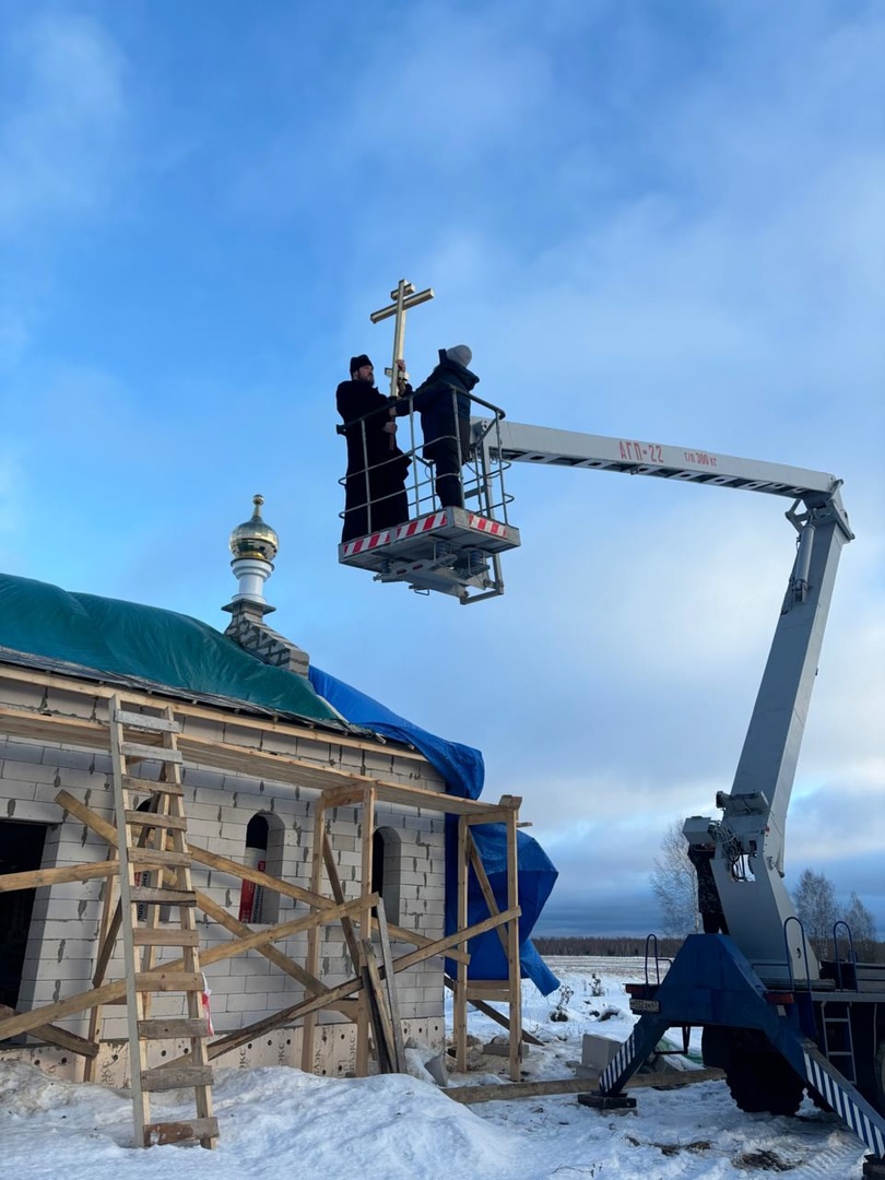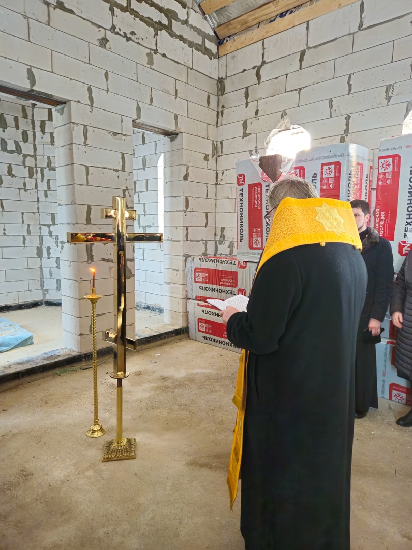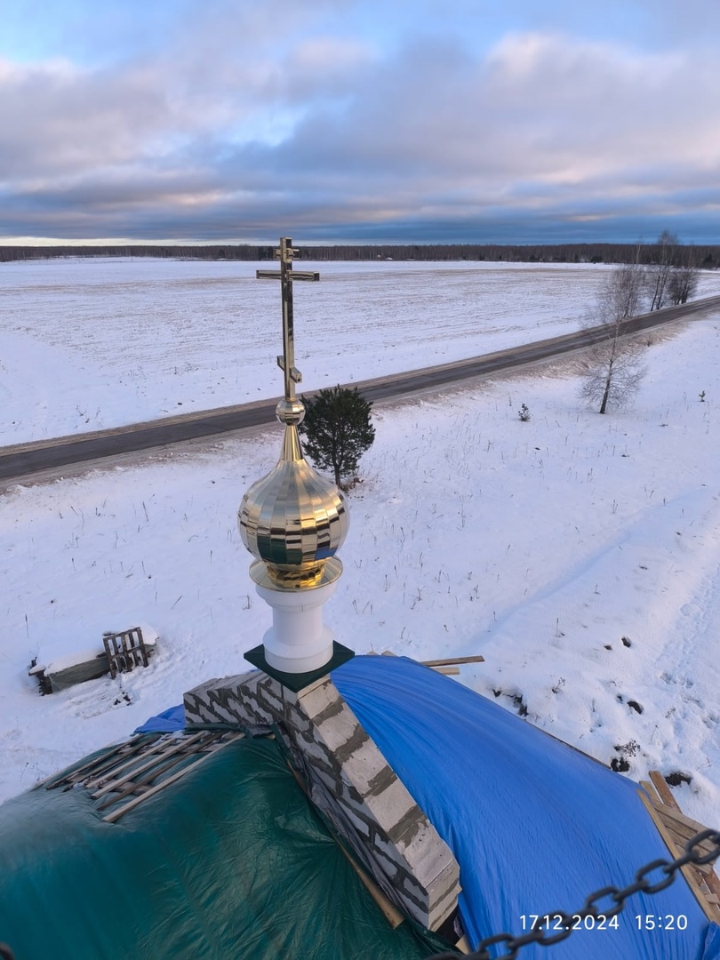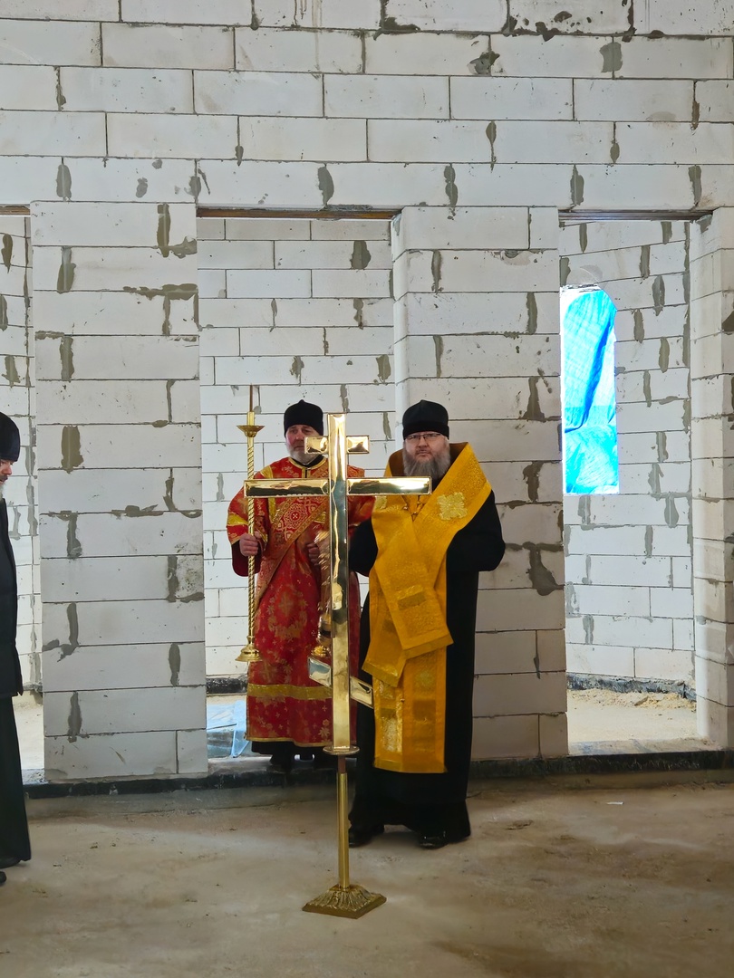 17 декабря 2024 г. Преосвященный Мелетий в сослужении духовенства Рославльской епархии совершил чин освящения креста на верх крова новосозданныя церкви в честь свв. Афанасия и Кирилла Александрийских д. Кириллы.