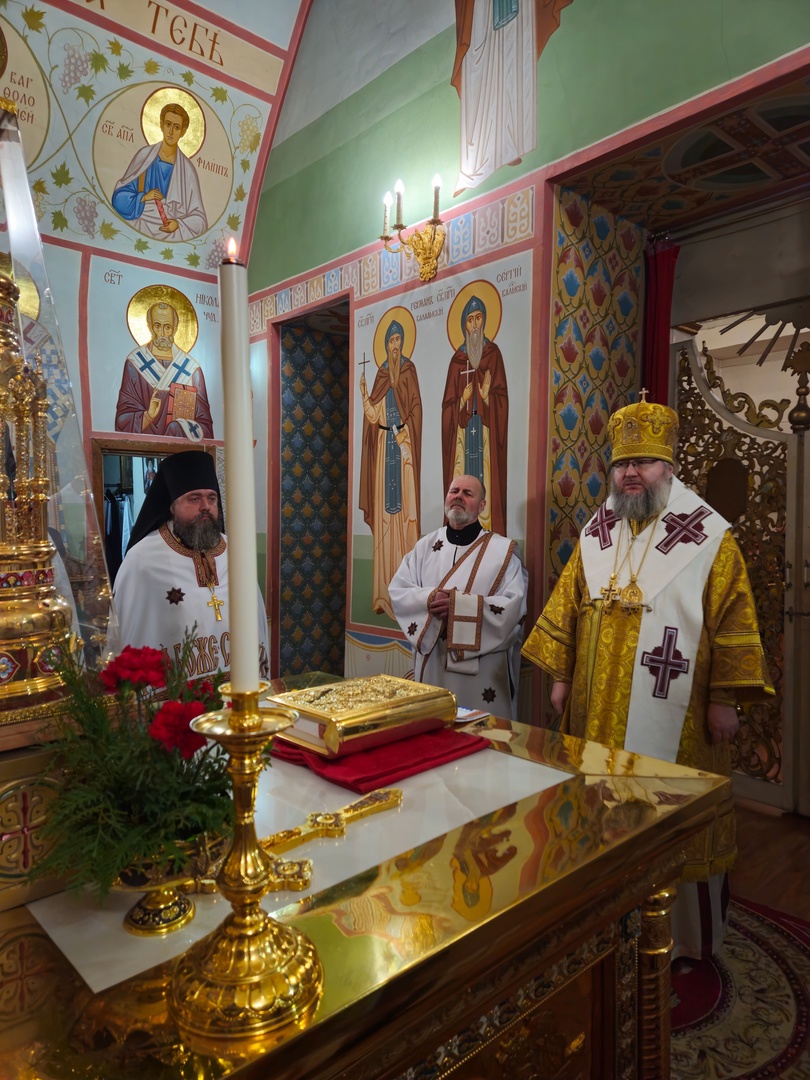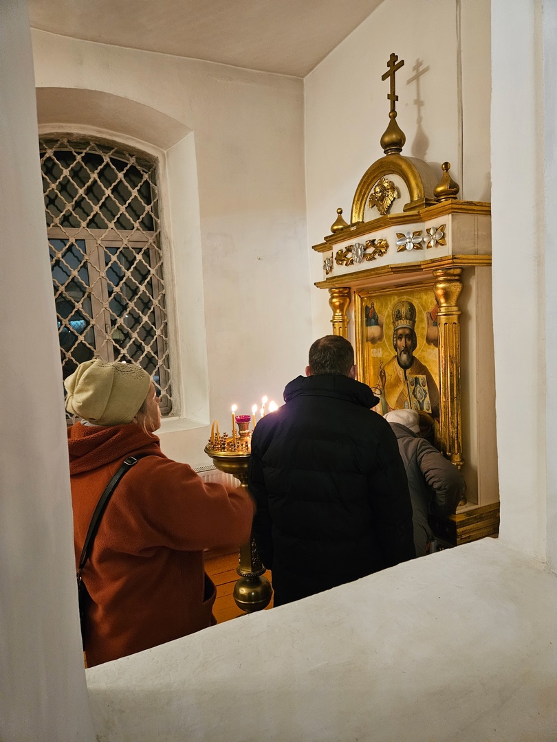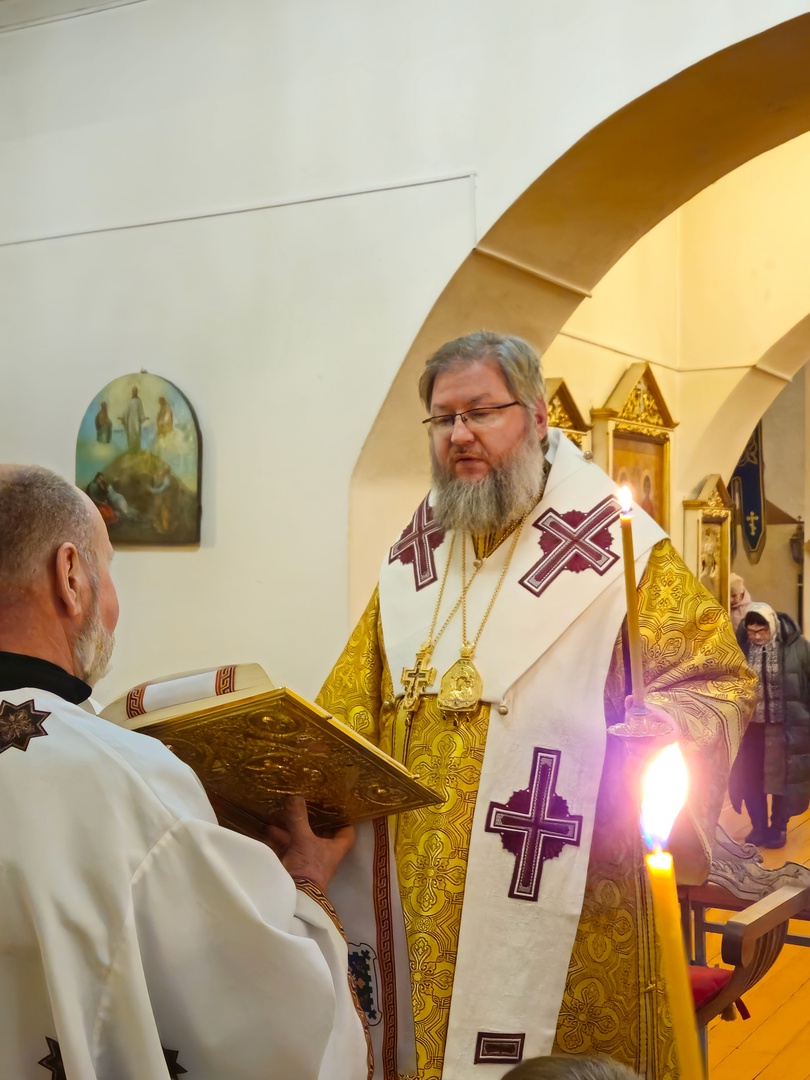 18 декабря 2024 г., на кануне празднования памяти святителя Николая Чудотворца, Преосвященный Мелетий совершил Всенощное Бдение в Спасо-Преображенском соборе г.Рославля.