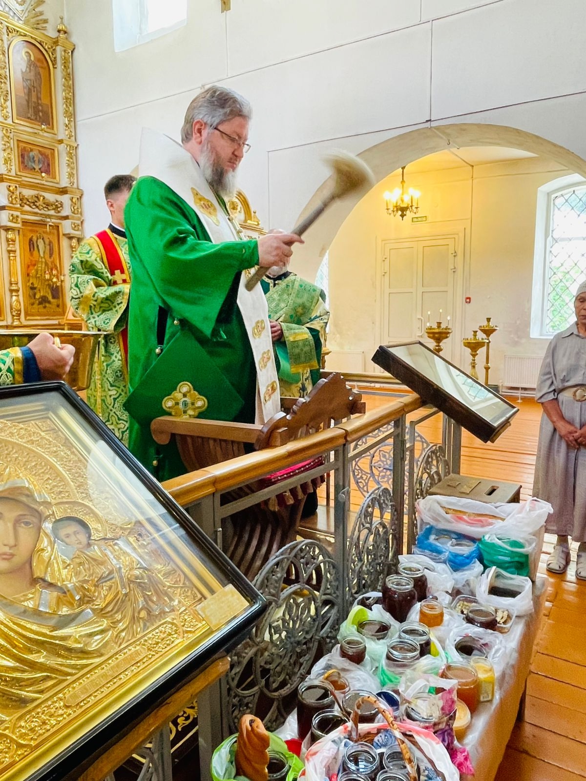 14 августа 2025 г. Преосвященный Мелетий совершил Божественную Литургию в Спасо-Преображенском соборе г.Рославля.