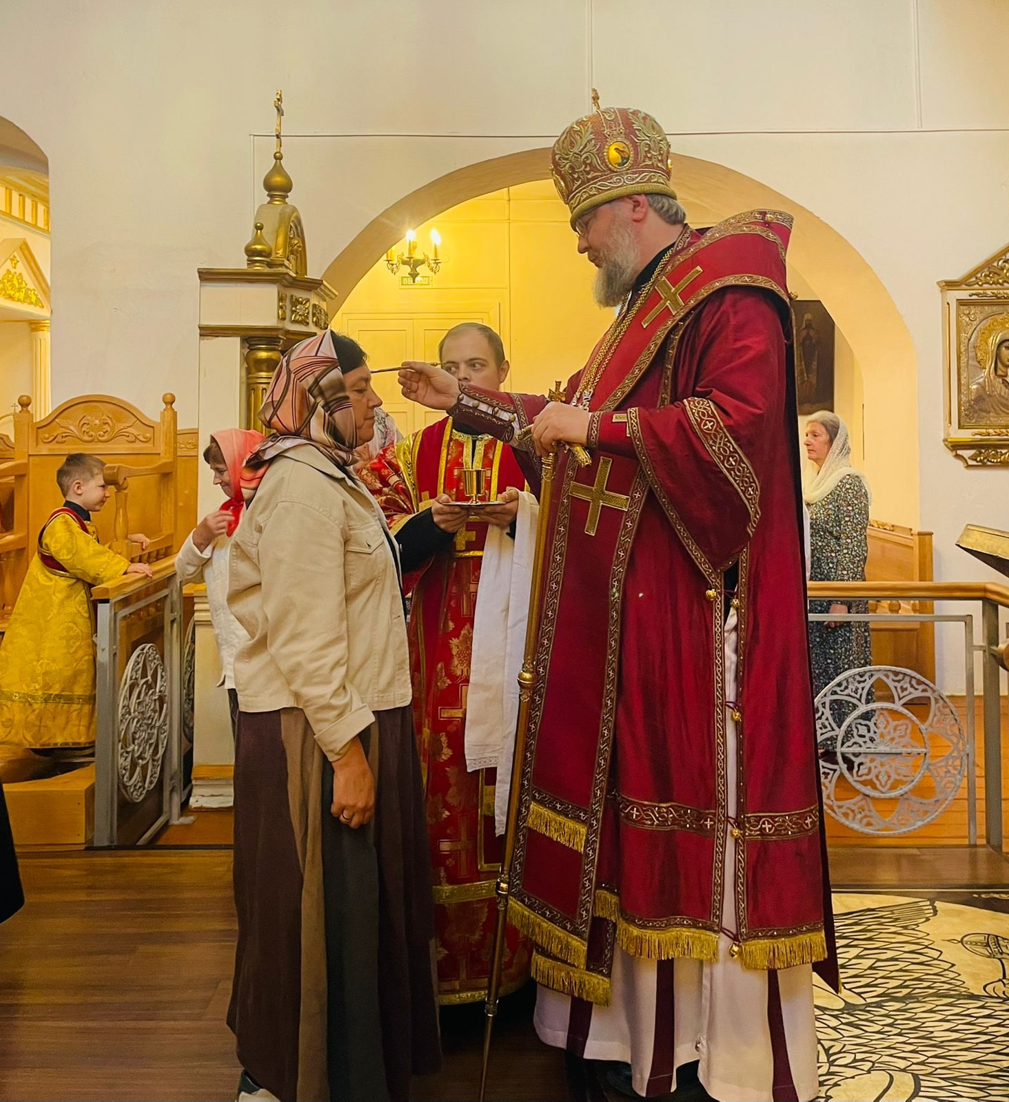 10 сентября 2025 г. Преосвященный Мелетий совершил Всенощное Бдение в Спасо-Преображенском соборе г.Рославля.