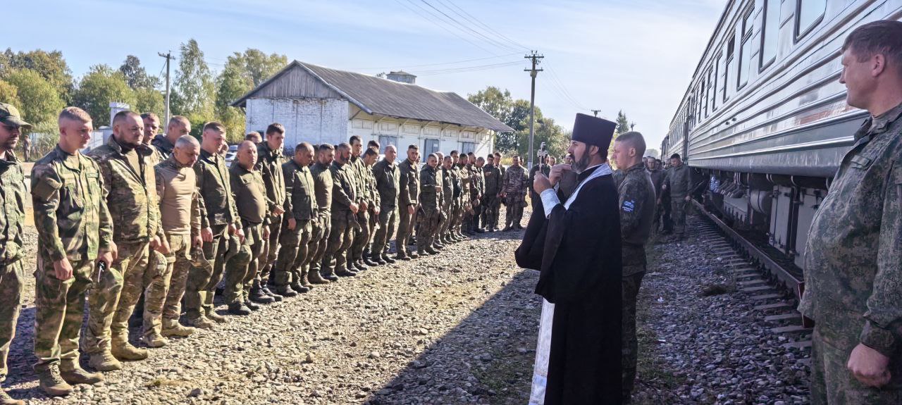 16 сентября 2025 г. настоятель Свято-Ильинского храма г. Ельни, иерей Михаил Дмитриев, совершил молебен для военнослужащих » Мотострелкового полка при ВКС» В/Ч № 78 541. Священник окропил солдат святой водой, и пожелал бойцам крепости духа в выполнении поставленных задач.