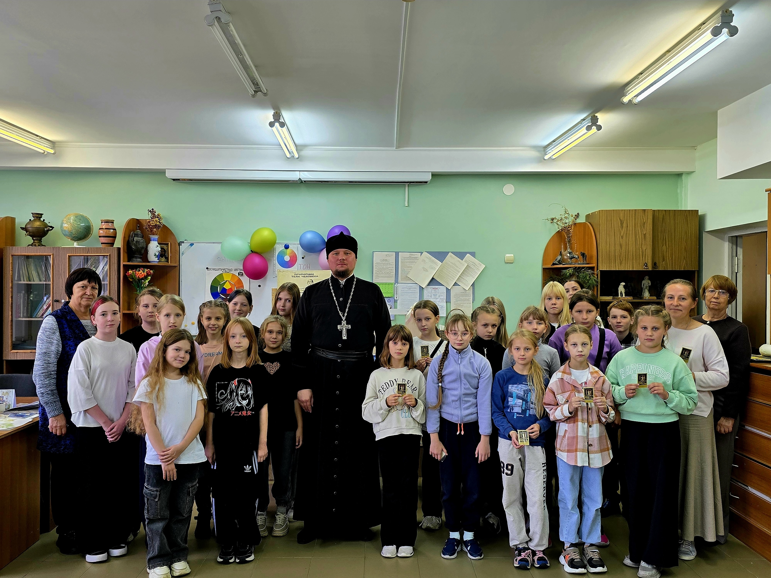 25 сентября, настоятель Десногорского подворья Рославльского монастыря иеромонах Тихон (Курочкин) посетил Детскую художественную школу г. Десногорска.