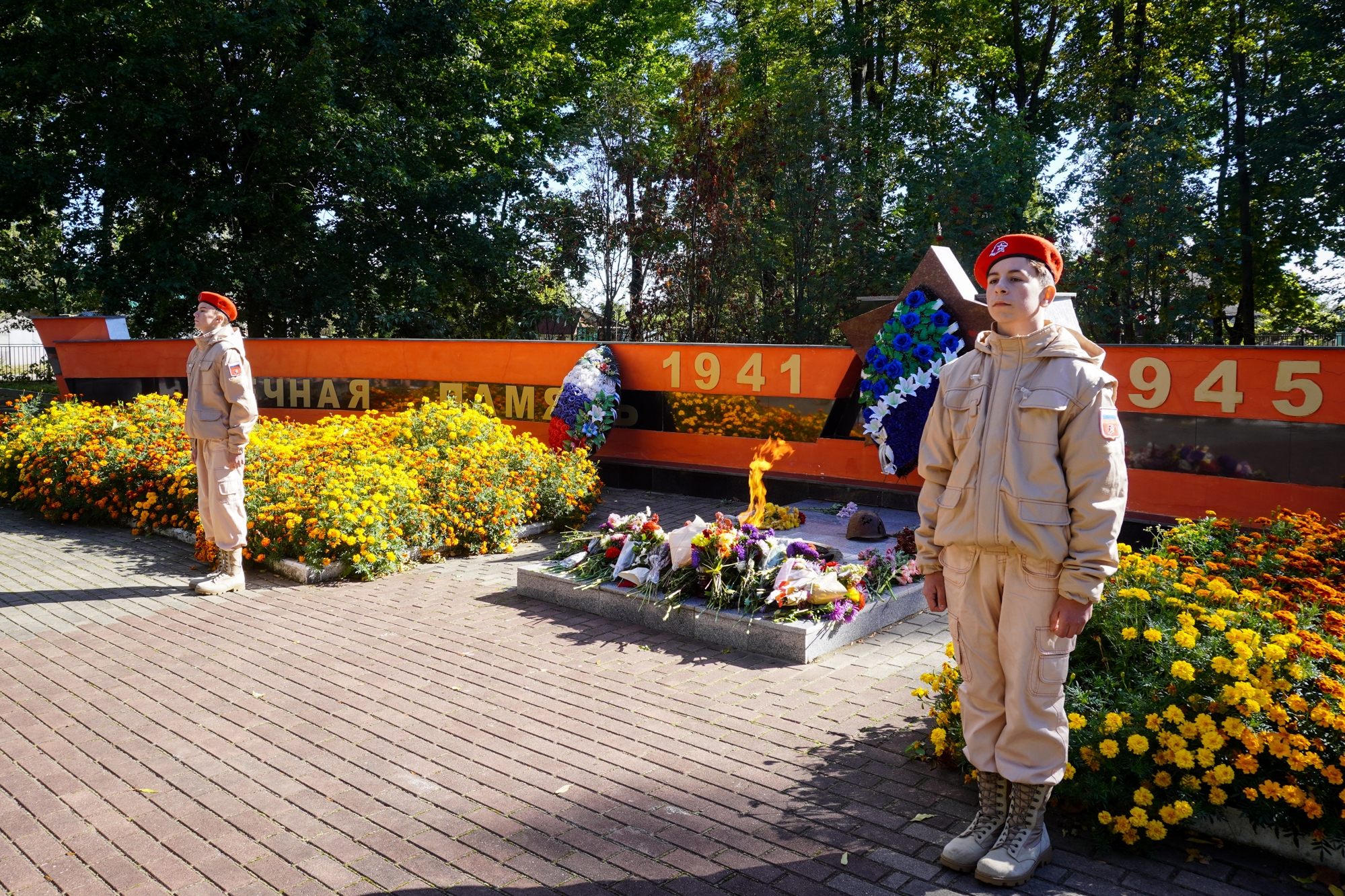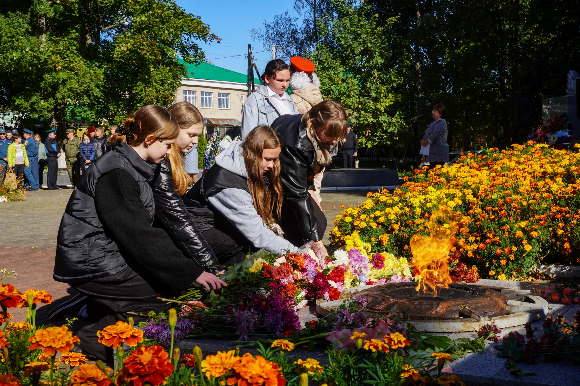 Завершился митинг минутой молчания и возложением цветов и венков к братским могилам и Вечному огню.