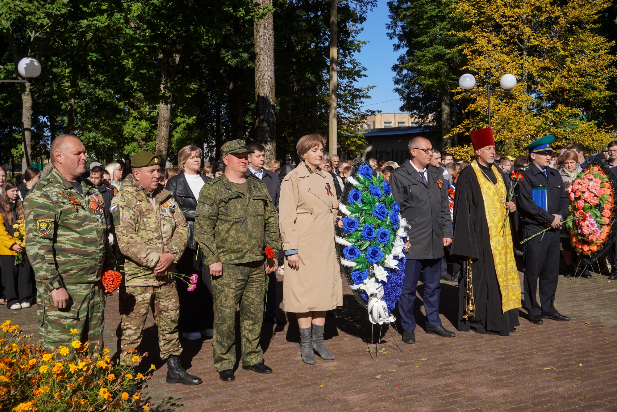 В торжественном мероприятии приняли участие Глава муниципального образования «Хиславичский муниципальный округ» Смоленской области Сергей Александрович Шапкин, председатель Хиславичского окружного Совета депутатов Светлана Николаевна Костюкова, благочинный Хиславичского церковного округа Рославльской епархии, настоятель Борисоглебского храма протоиерей Роман Свистун, представители правоохранительных органов, администрации округа, трудовых коллективов и учреждений, школьники и жители поселка.