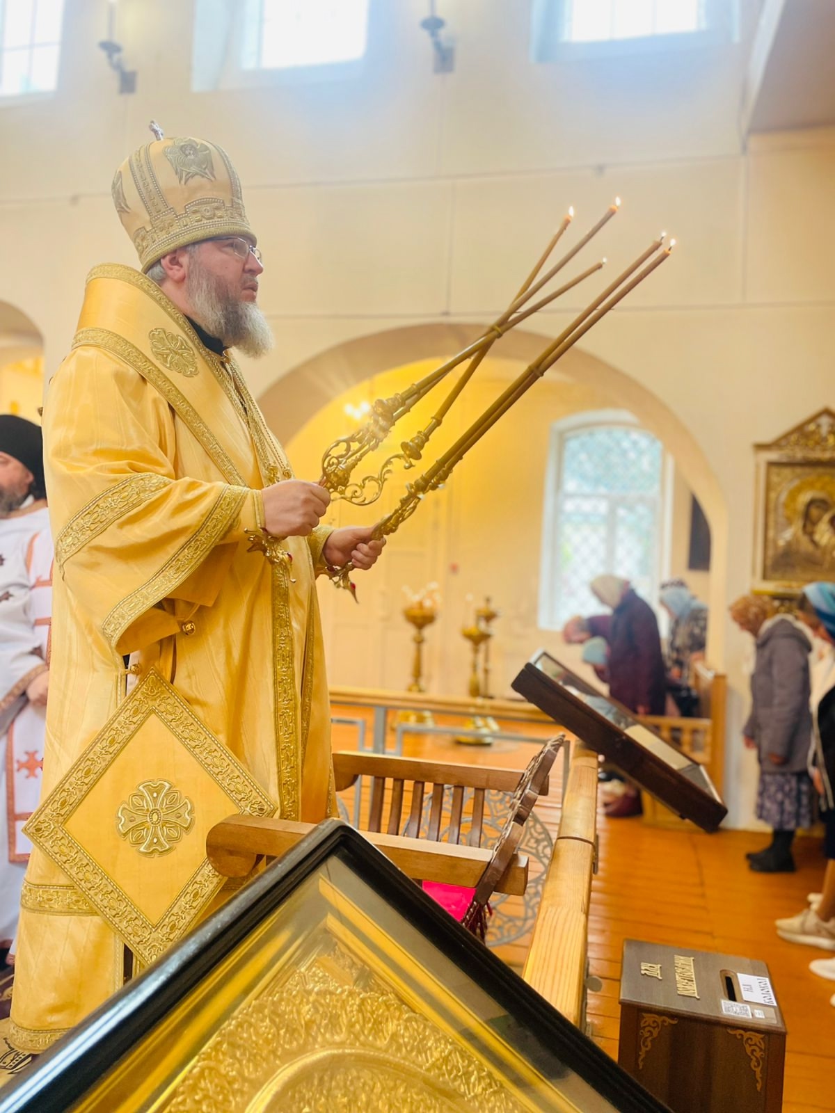 5 октября 2025 г. Преосвященный Мелетий совершил Божественную Литургию в Спасо-Преображенском соборе г.Рославля.