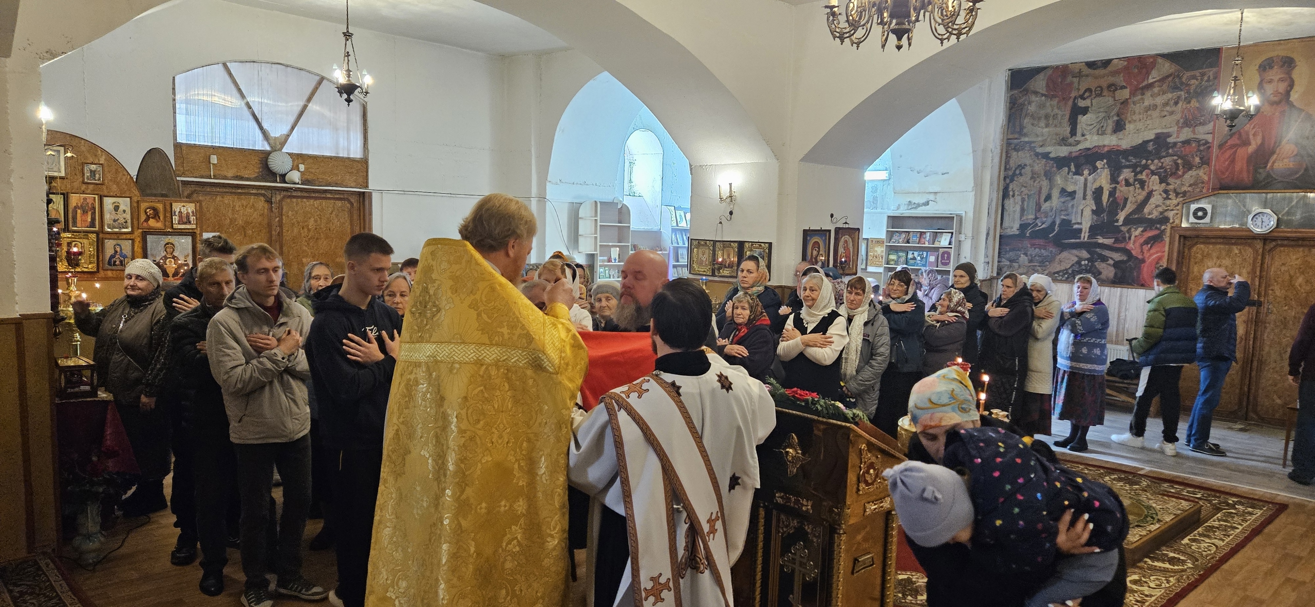 12 октября 2025 г., Преосвященный Мелетий совершил Божественную Литургию в Храме Воскресения Господня города Рославля.